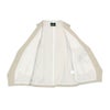 身頃はコンパクトな収まりを意識したパターニングで構成され、ウエストラインに自然に沿う設計が、過度な主張を抑えたエレガントな印象を描きます。ジャケットのインナーとしても、シャツの上に単体で纏ってもバランス良く収まり、スタイリング全体を引き締めます。