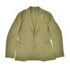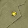 フロントは2つボタン仕様にノッチドラペルを組み合わせ、Vゾーンをすっきりと見せる構成。バルカポケットを採用したクラシックなディティールがさりげない洒落感を演出し、ジャンネットを象徴する太陽モチーフのピンがアイコニックに映えています。伝統的な要素と現代的な感覚が調和した、着こなしの幅を広げるデザインです。