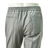 ご注目頂きたいのは、リラックスした穿き心地とエレガンスを両立させた設計思想。ウエストはノンジップのゴムシャーリング×ドローコード仕様で、スウェットの様な軽快さを実現しています。前後に施した永久クリースとダブル仕上げの裾は、イージーさの中に、装いをラフに見せない工夫。随所に拘りを注ぎ込んだ、究極の一本です。