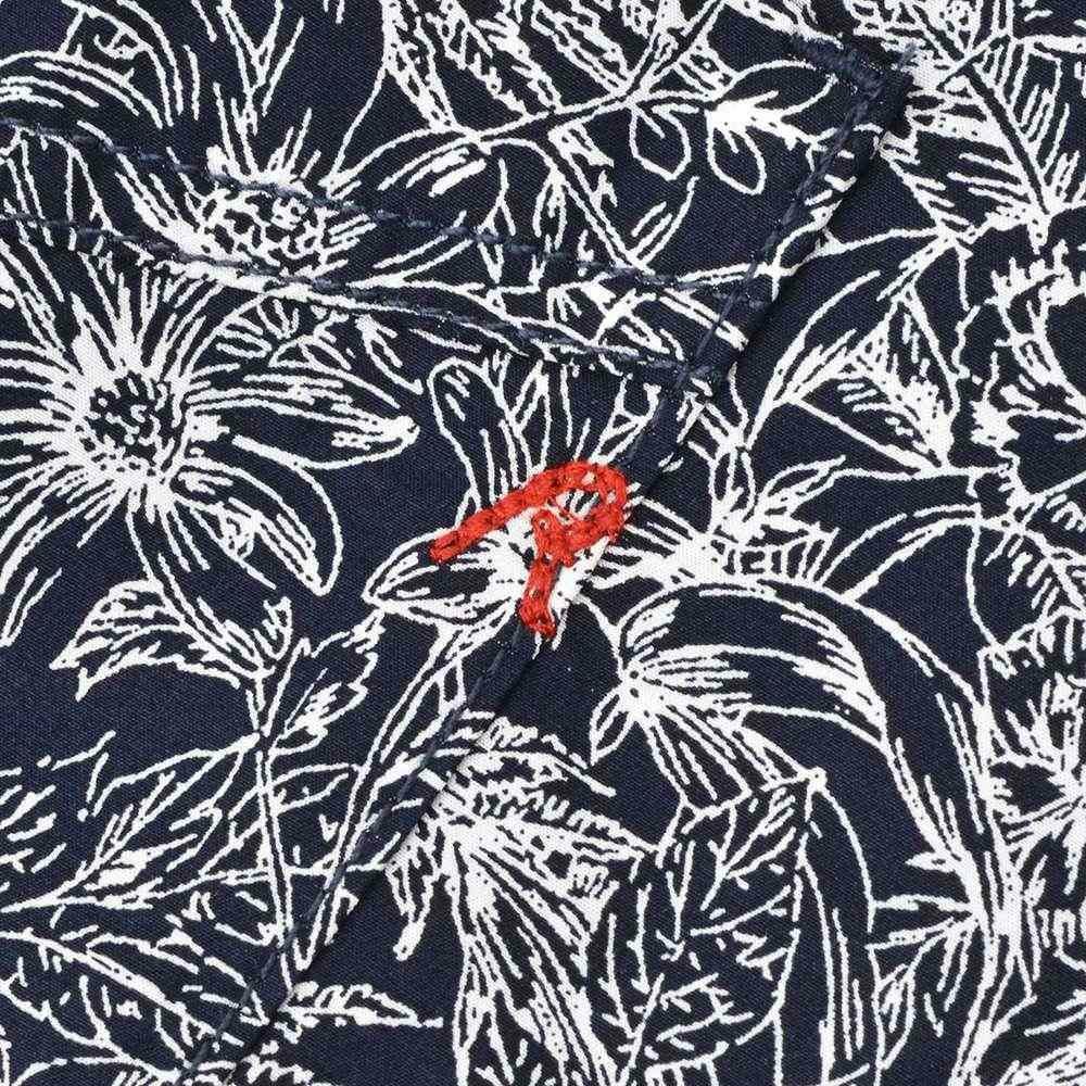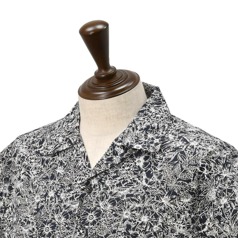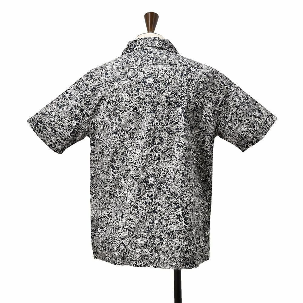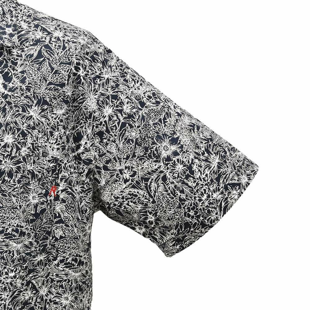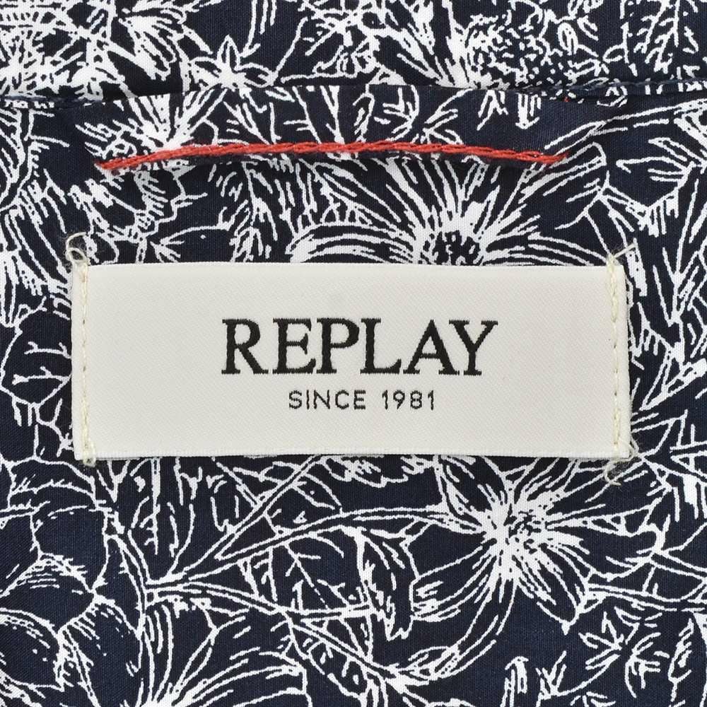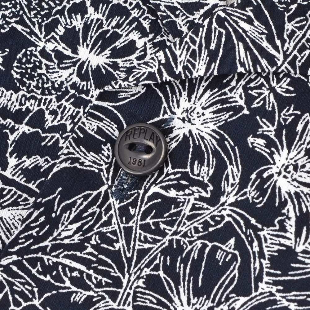 リプレイ REPLAY 開襟シャツ メンズ 半袖アロハシャツ コットンポプリン ネイビー×ホワイト ボタニカル柄プリント オープンカラー リラックスフィット 国内正規品 オクテット名古屋