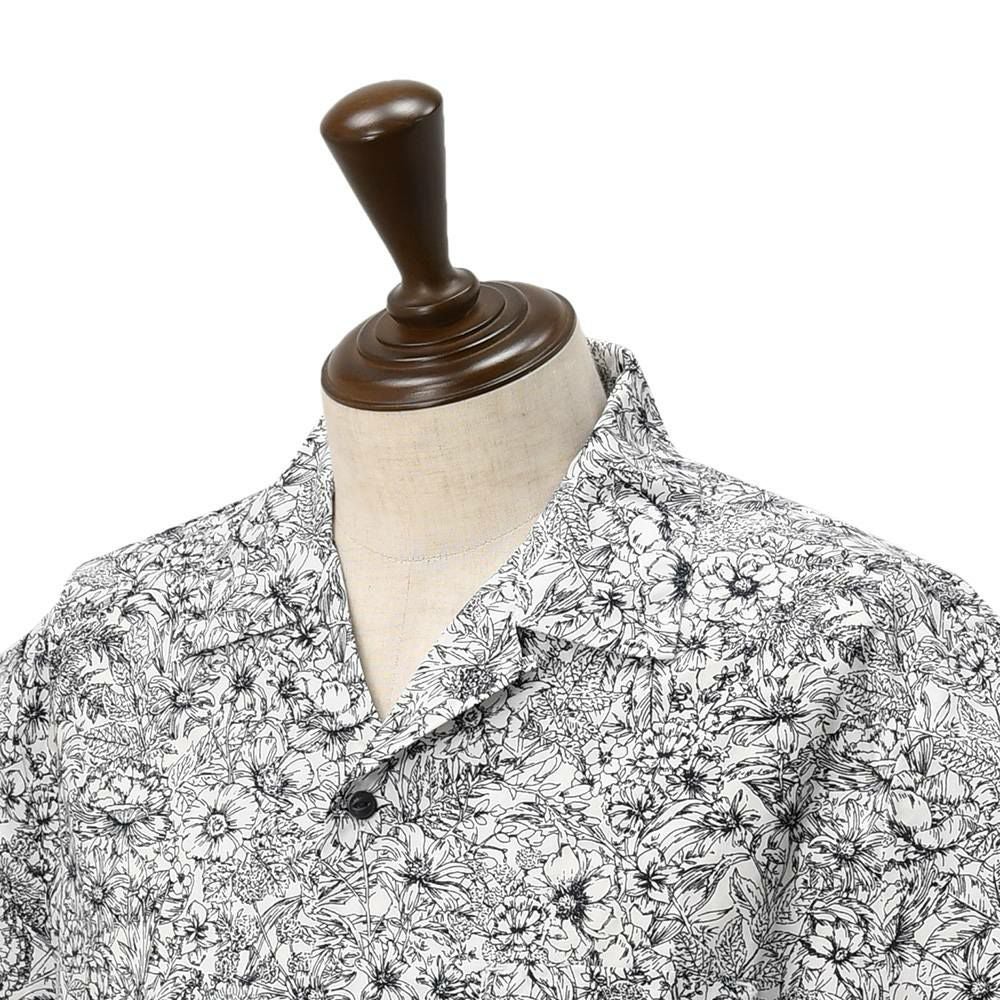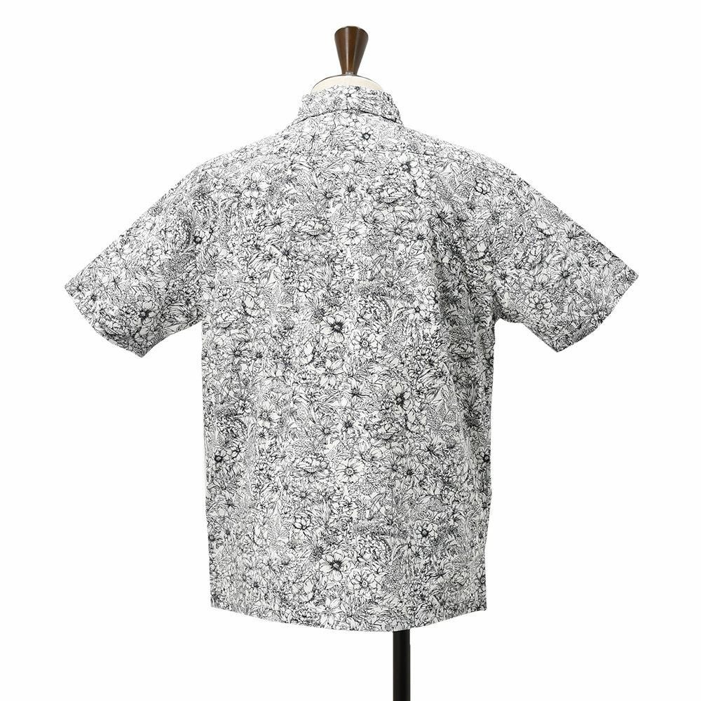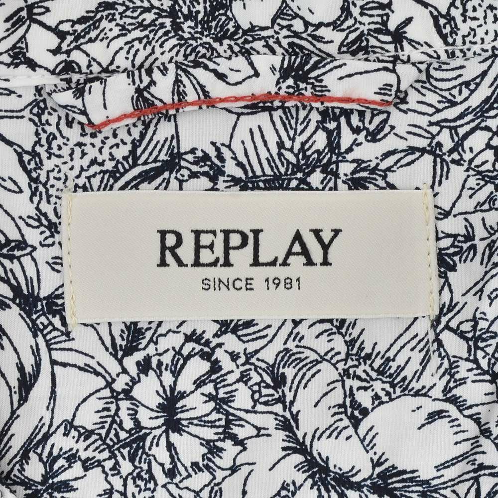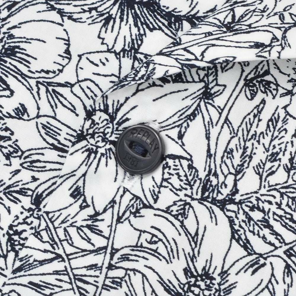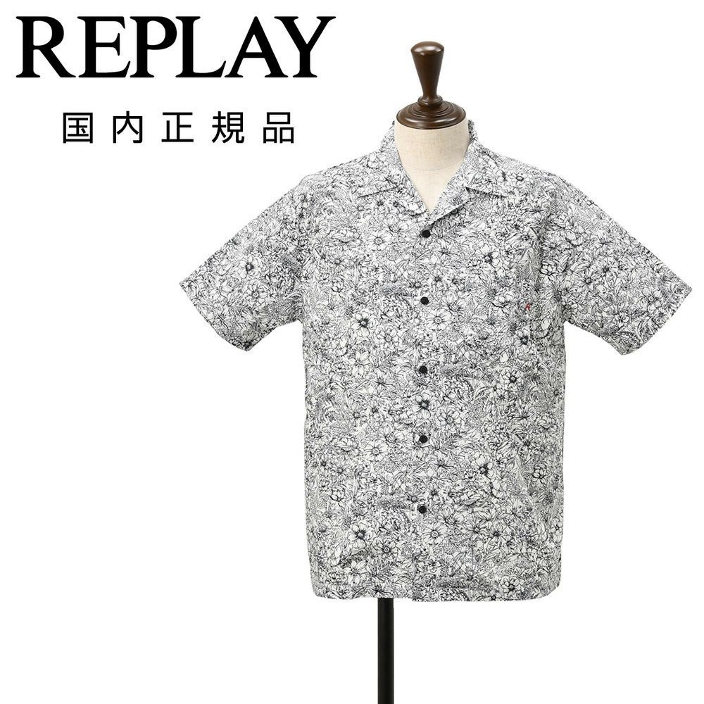 リプレイ REPLAY 開襟シャツ メンズ 半袖アロハシャツ コットンポプリン ホワイト×ネイビー ボタニカル柄プリント オープンカラー リラックスフィット 国内正規品 オクテット名古屋