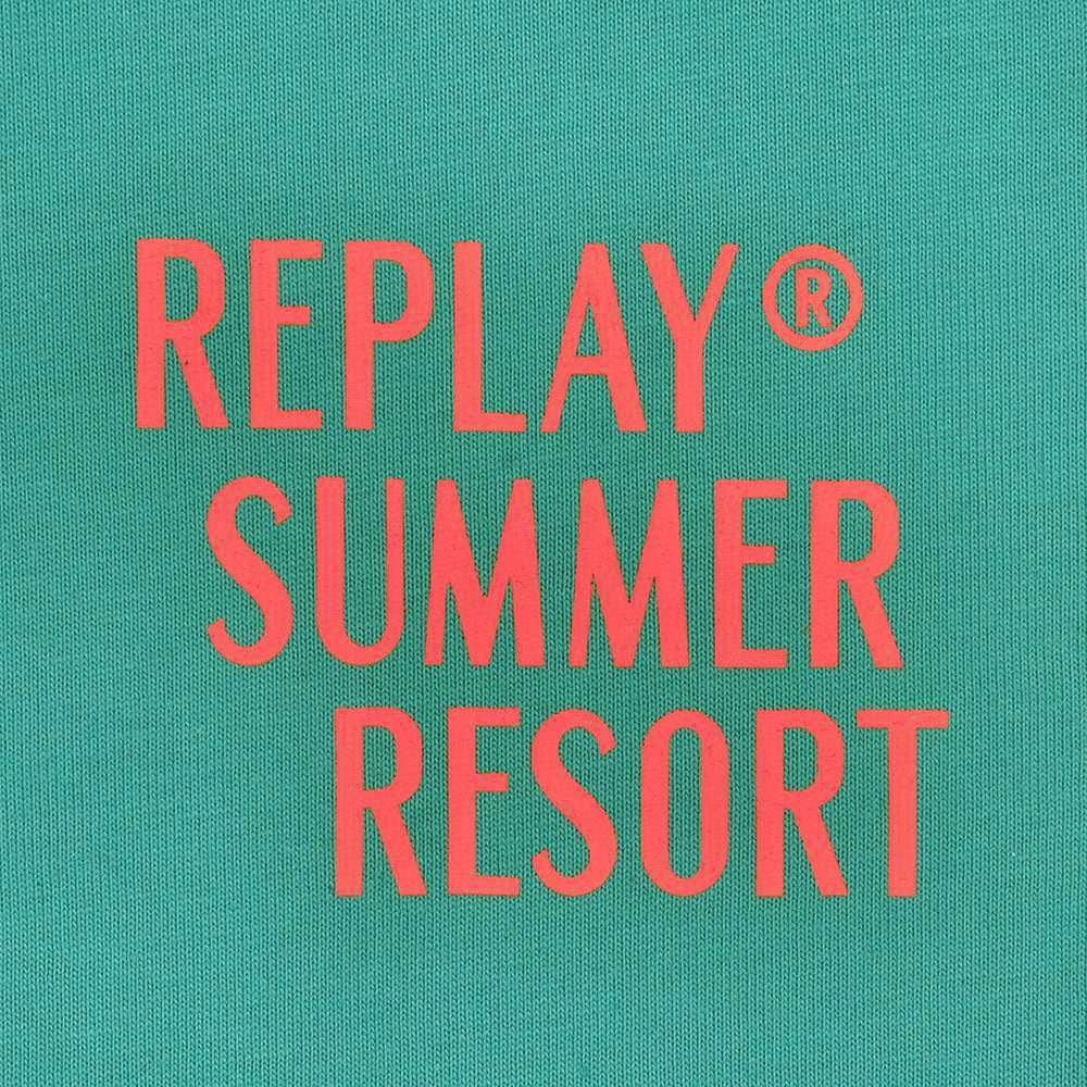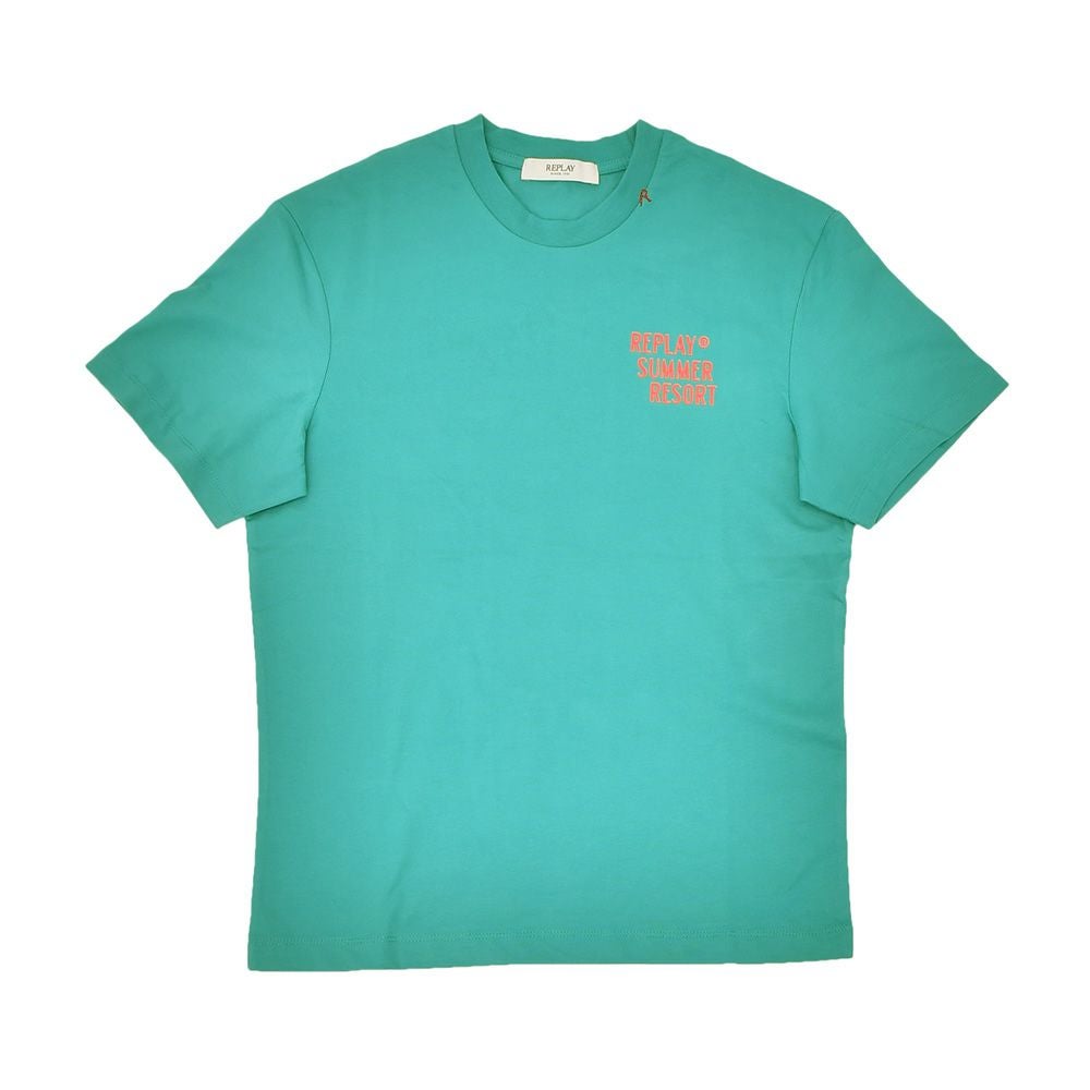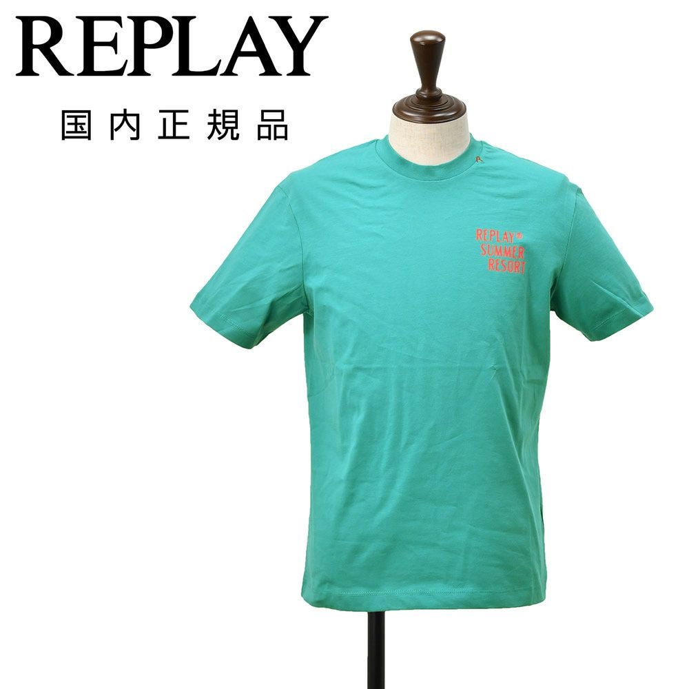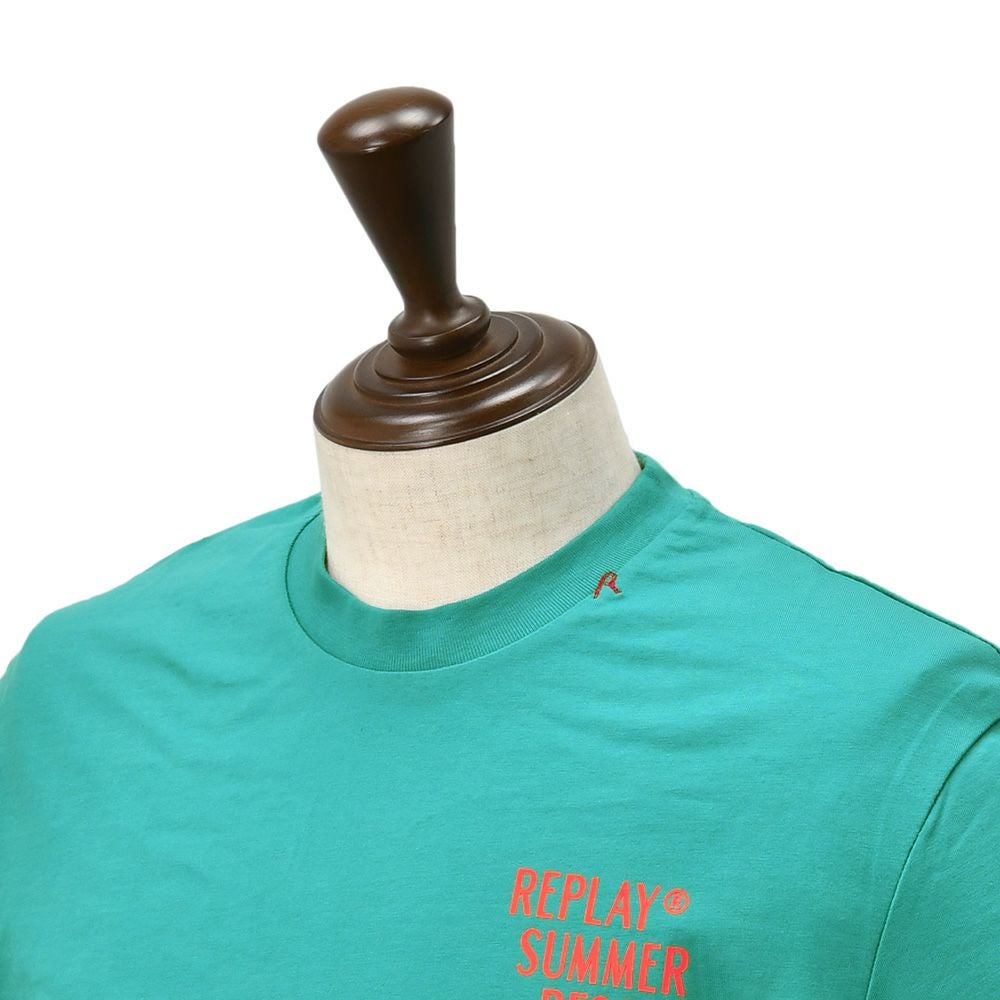 リプレイ REPLAY 半袖Tシャツ メンズ クルーネックカットソー ピュアコットンジャージー グリーン 緑 ロゴプリント×バックレモンプリント レギュラーフィット 国内正規品 オクテット名古屋