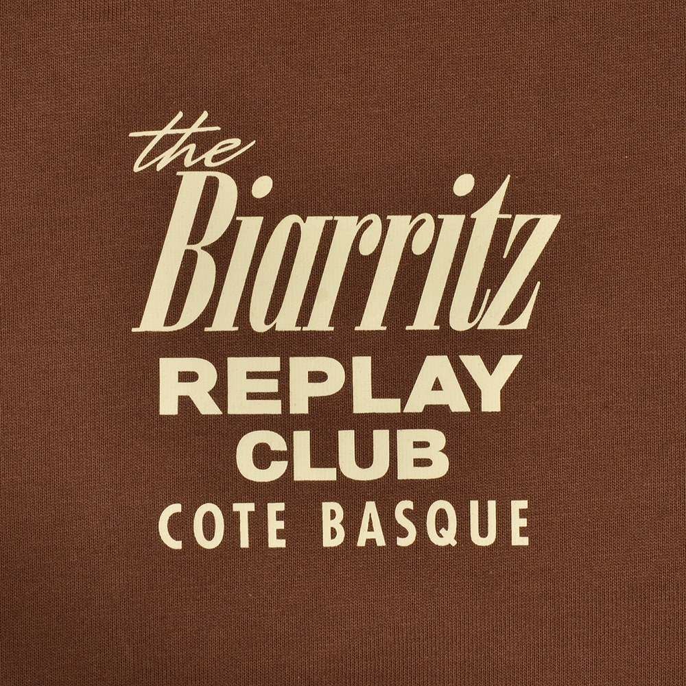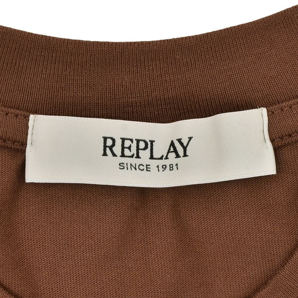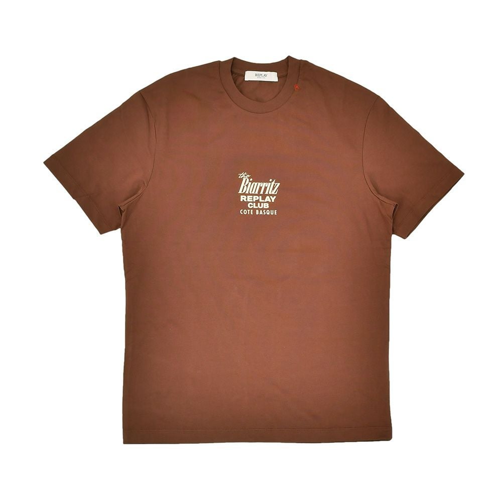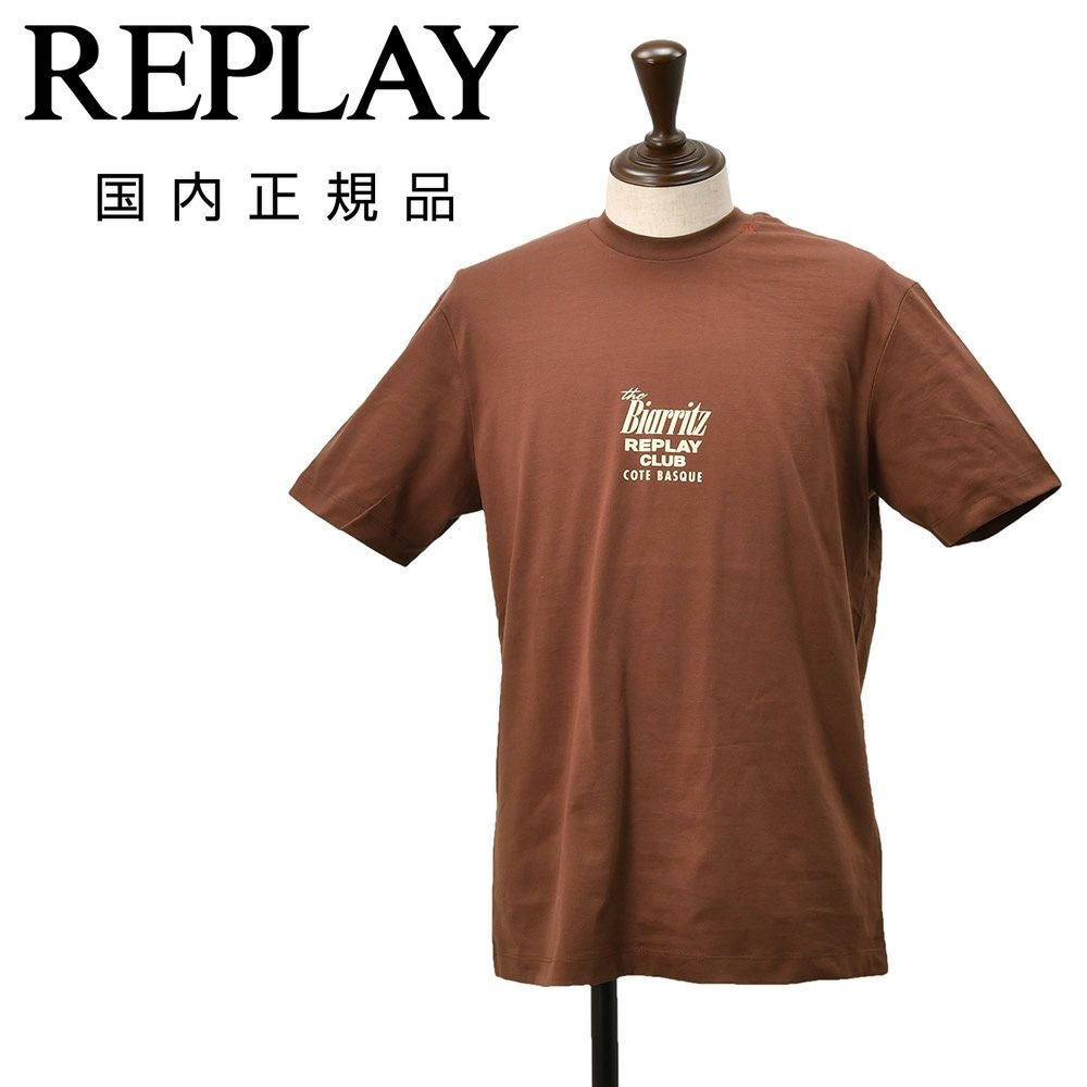 リプレイ REPLAY 半袖Tシャツ メンズ クルーネックカットソー ピュアコットンジャージー レッドブラウン ロゴプリント バックカクテルプリント ガーメントダイ レギュラーフィット 国内正規品 オクテット名古屋