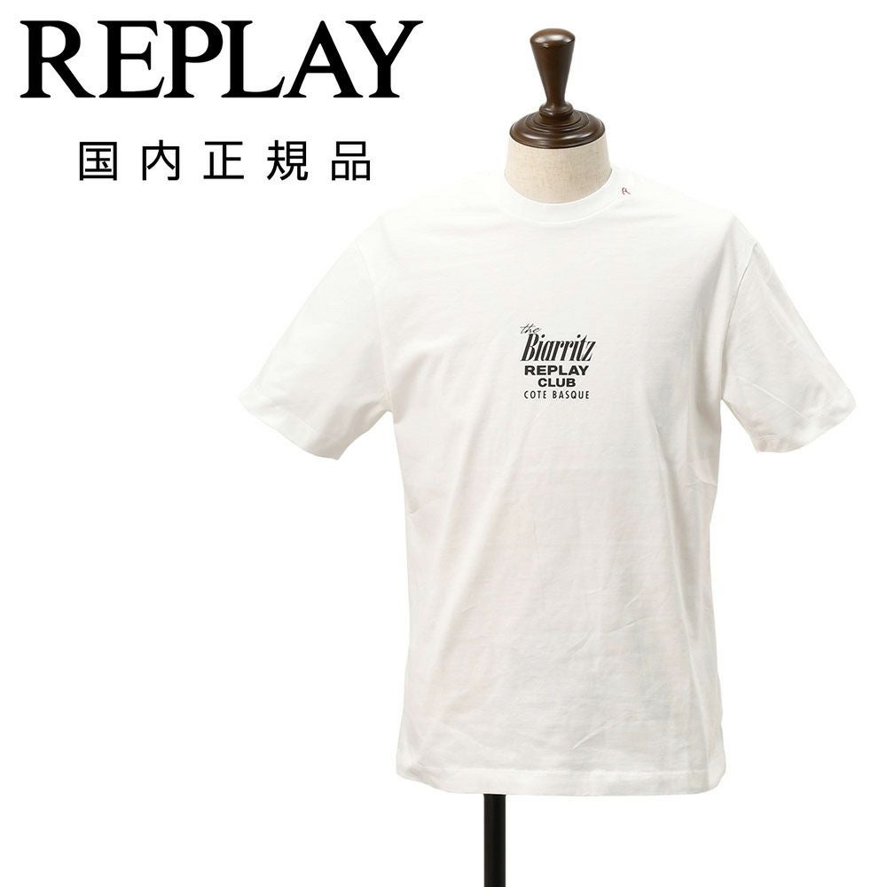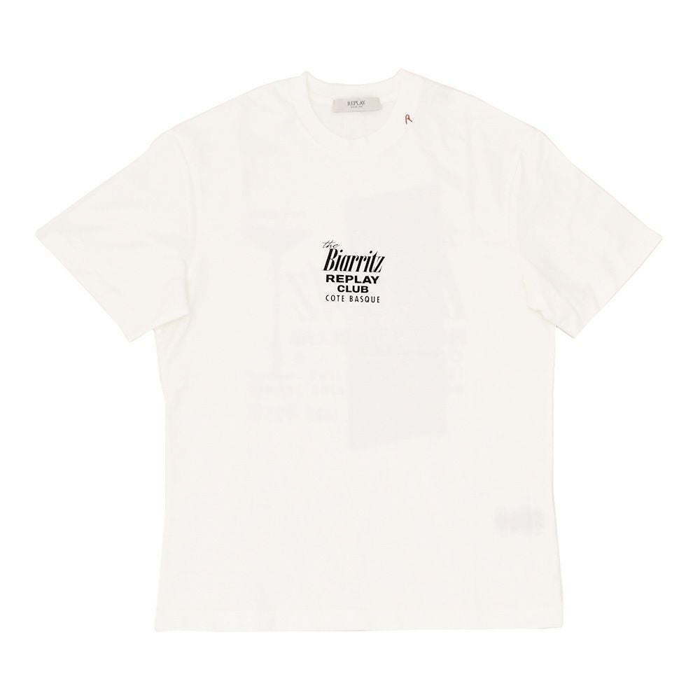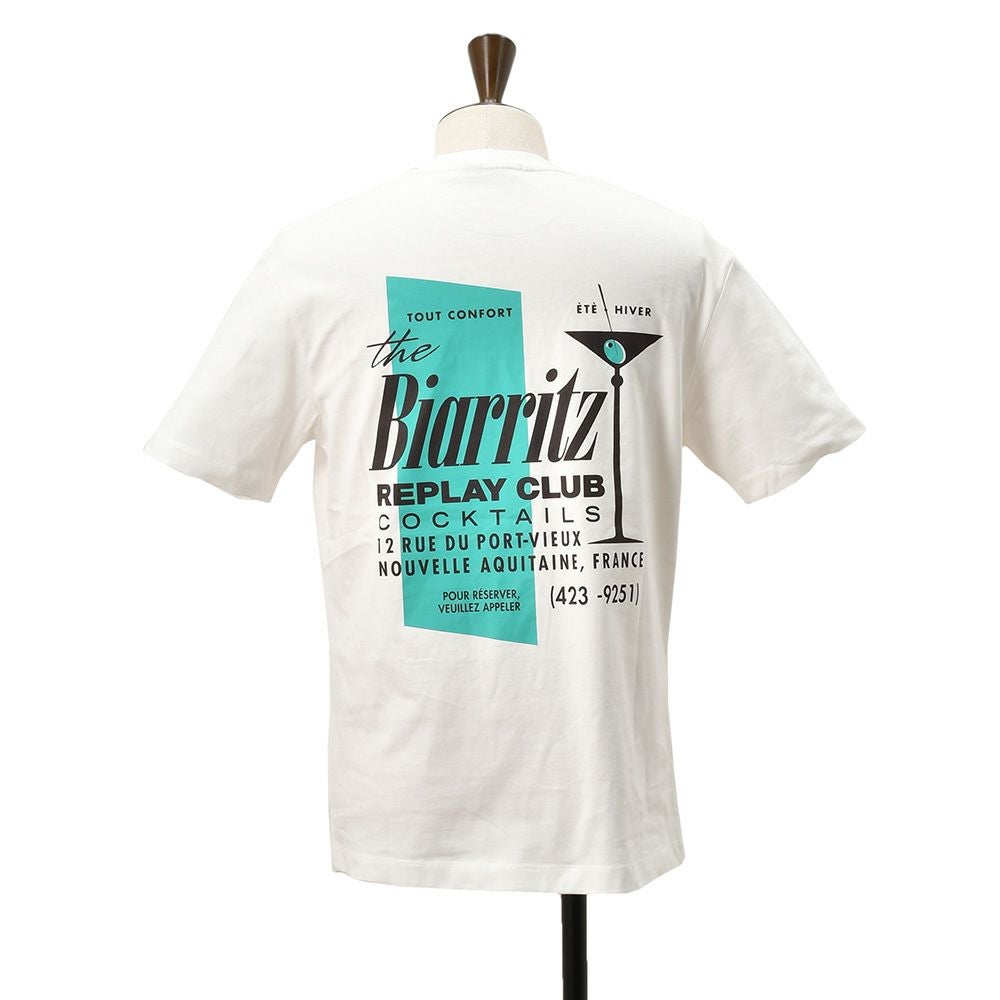 リプレイ REPLAY 半袖Tシャツ メンズ クルーネックカットソー ピュアコットンジャージー ホワイト 白 ロゴプリント バックカクテルプリント ガーメントダイ レギュラーフィット 国内正規品 オクテット名古屋