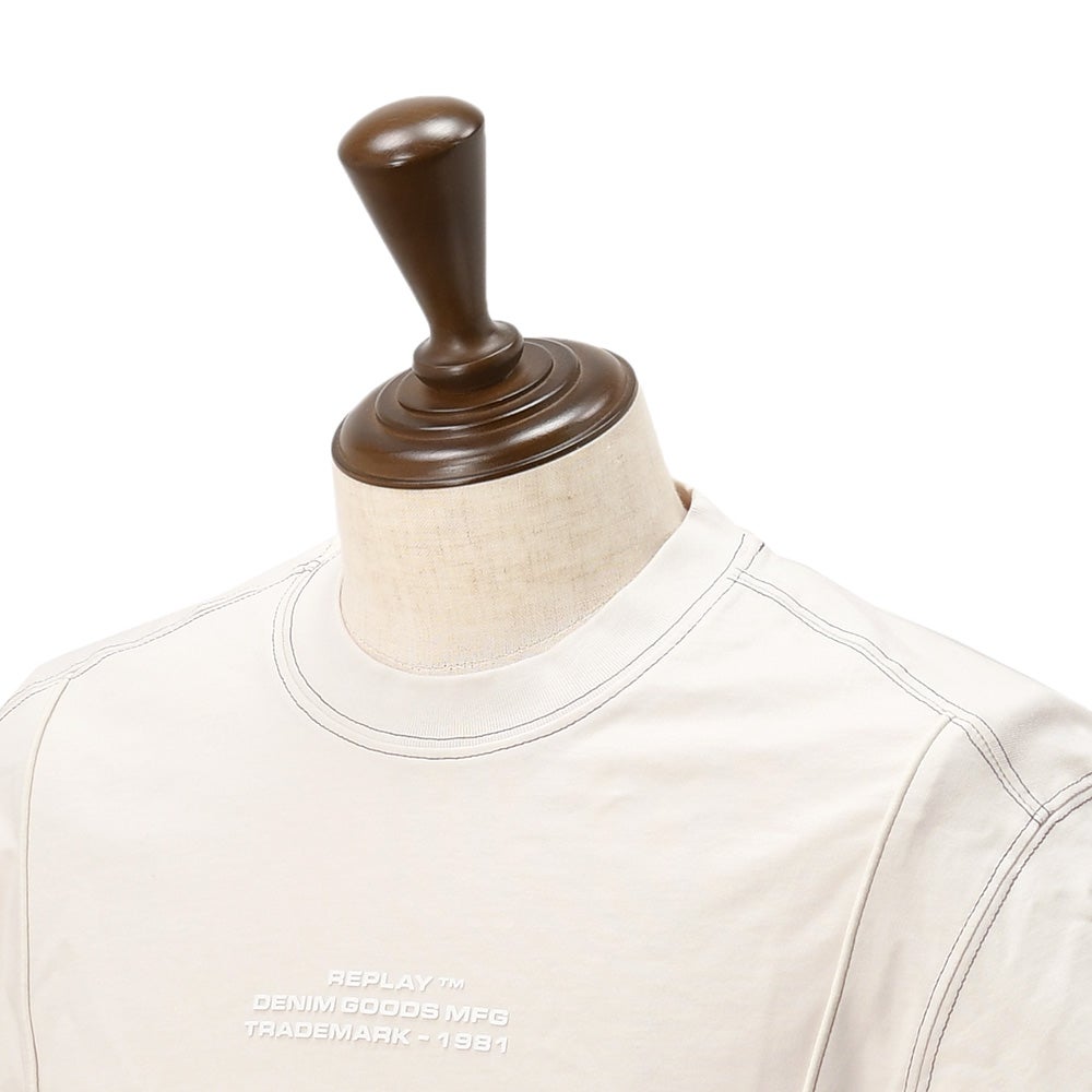 リプレイ REPLAY 半袖Tシャツ メンズ クルーネックカットソー ピュアコットンジャージー ライトベージュ ラバープリント エンボスロゴ ミドルオンス レギュラーフィット 国内正規品 オクテット名古屋