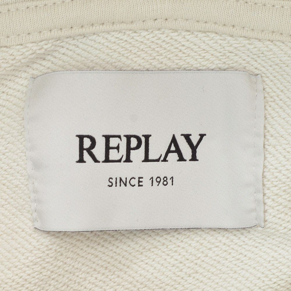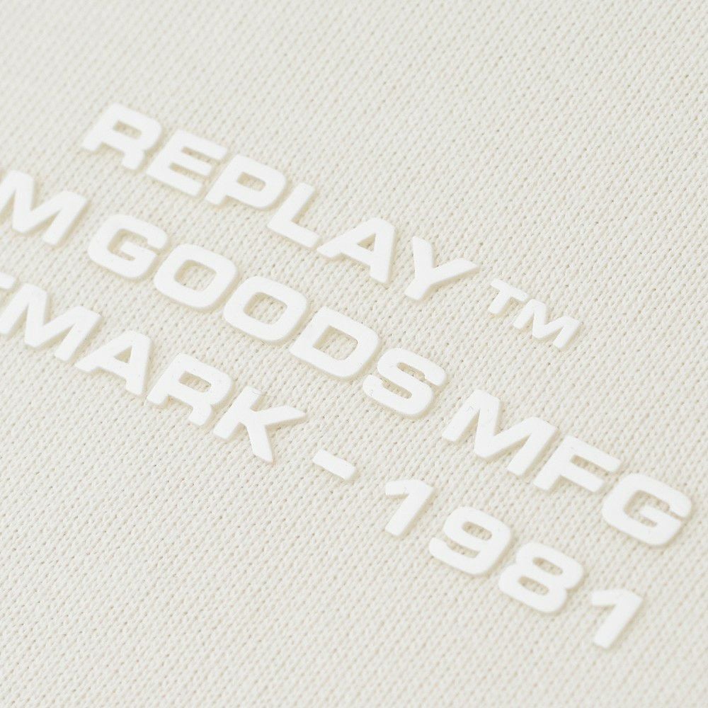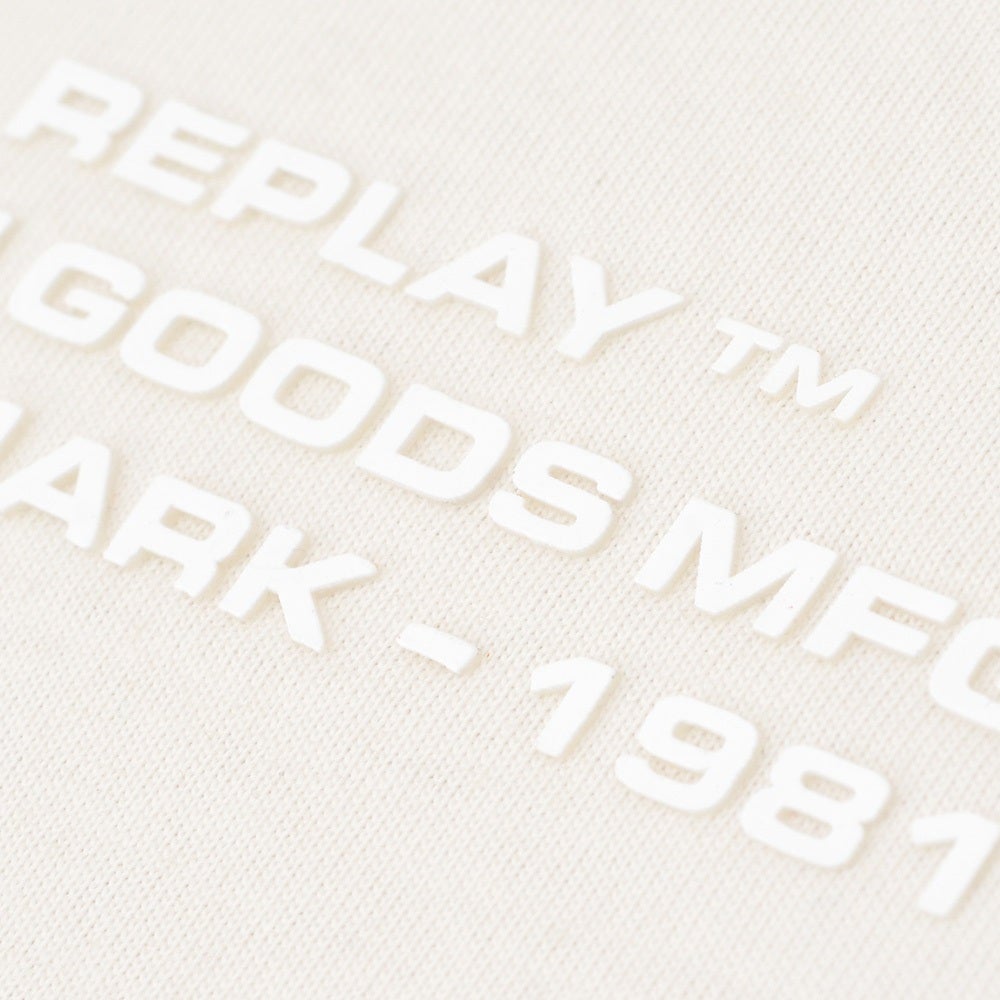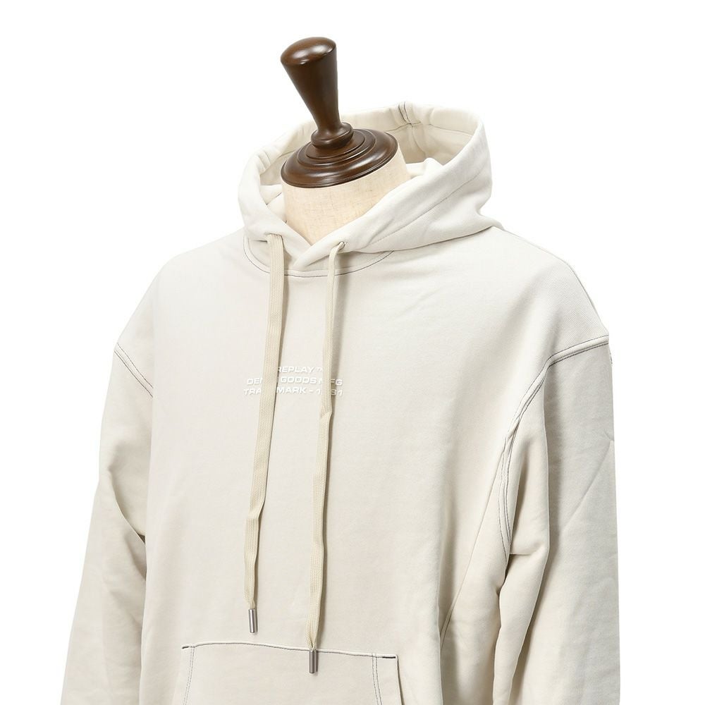 リプレイ REPLAY プルオーバーパーカー メンズ コットンスウェット生地 ライトベージュ エンボスラバープリント 裏パイル仕様 コットンテリー リラックスフィット 国内正規品 オクテット名古屋
