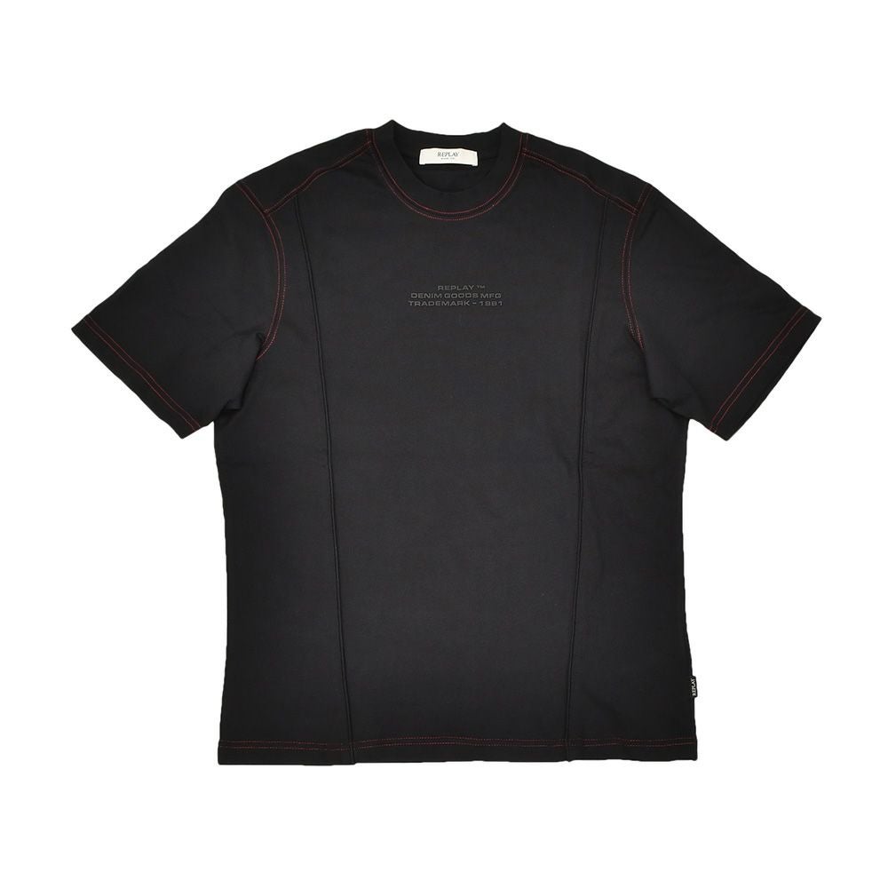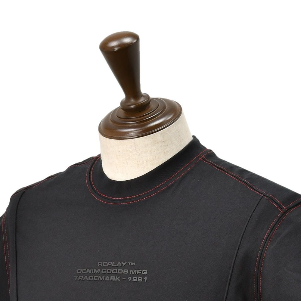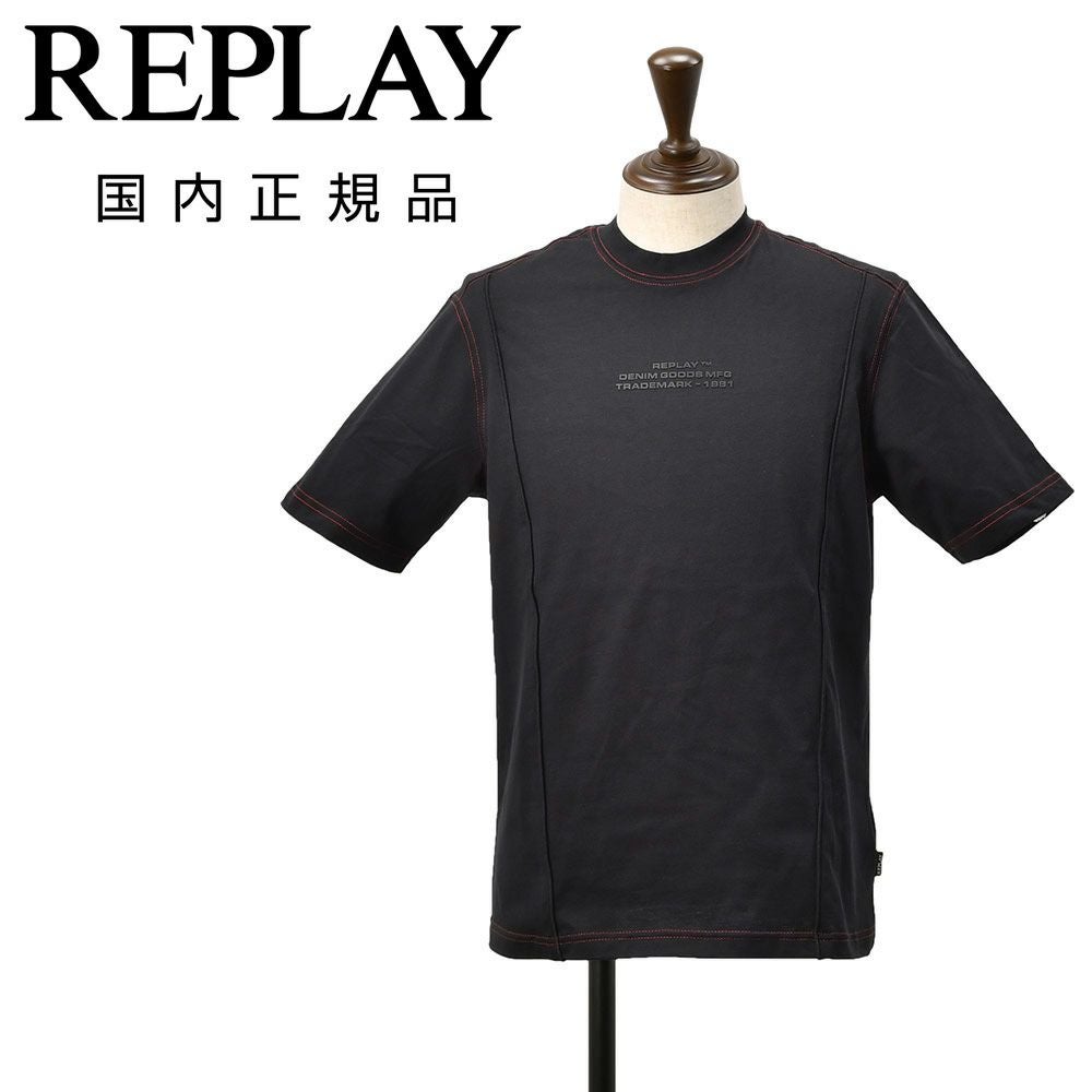 リプレイ REPLAY 半袖Tシャツ メンズ クルーネックカットソー ピュアコットンジャージー ブラック 黒 ラバープリント エンボスロゴ ミドルオンス レギュラーフィット 国内正規品 オクテット名古屋