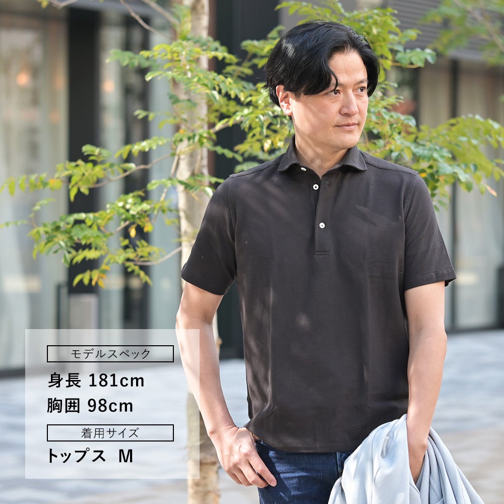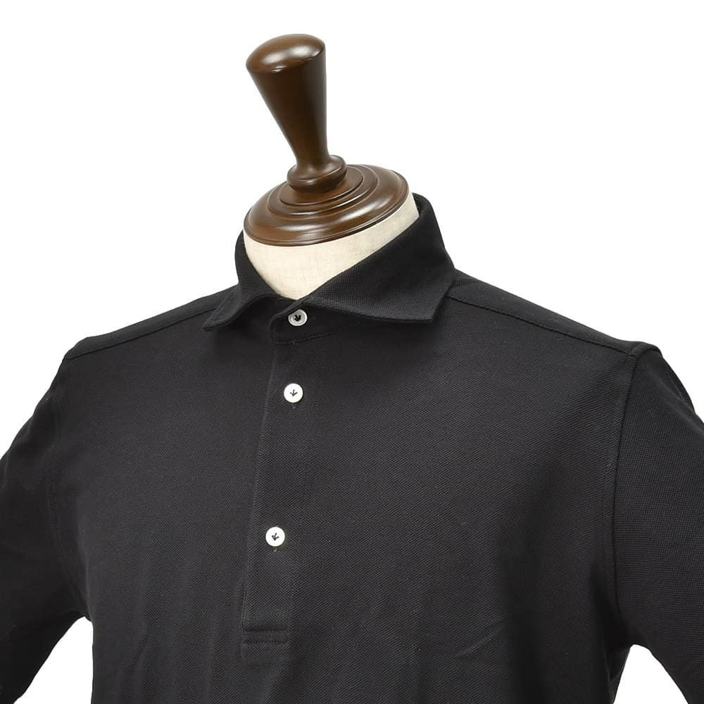 ジャンネット GIANNETTO 半袖ポロシャツ メンズ 3つ釦 鹿の子ジャージー コットン100% ブラック 黒 ホリゾンタルカラー ブランドアイコンマーク レギュラーフィット イタリア製 国内正規品 オクテット名古屋