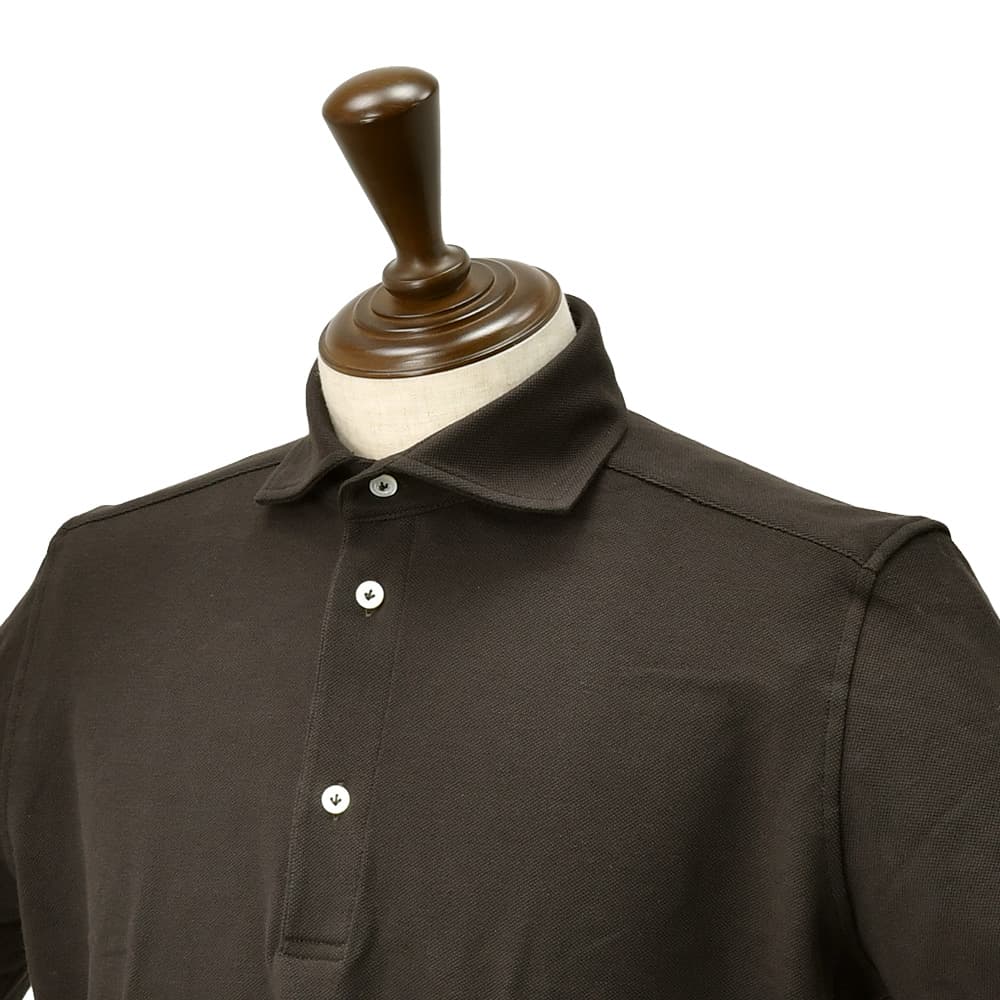 ジャンネット GIANNETTO 半袖ポロシャツ メンズ 3つ釦 鹿の子ジャージー コットン100% ダークブラウン ホリゾンタルカラー ブランドアイコンマーク レギュラーフィット イタリア製 国内正規品 オクテット名古屋