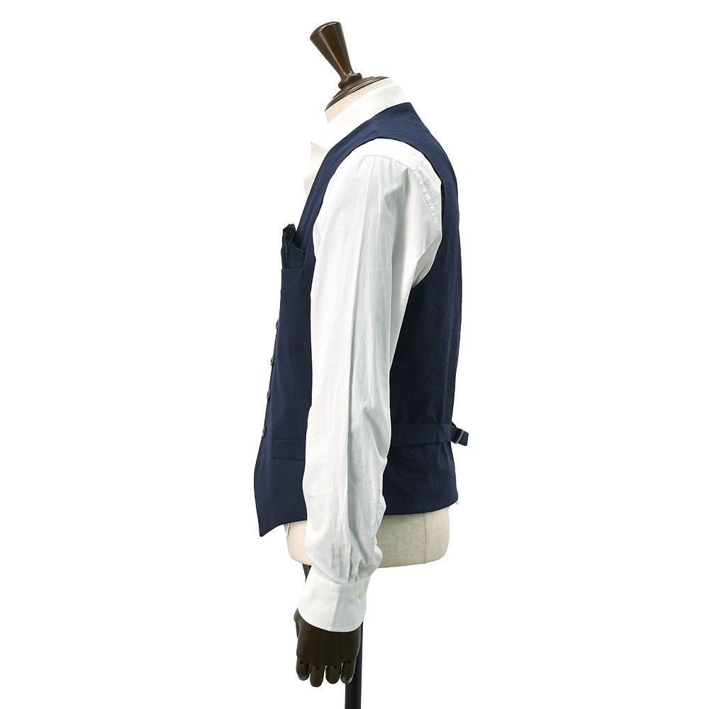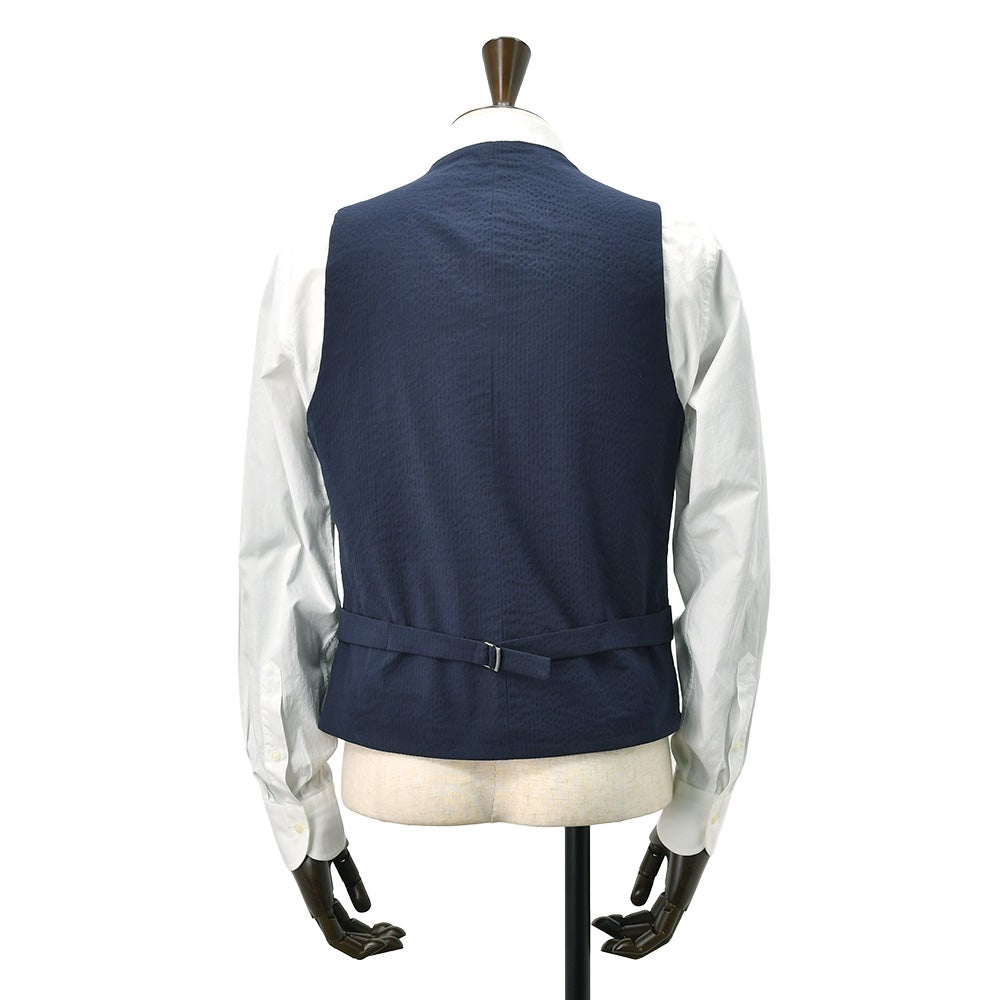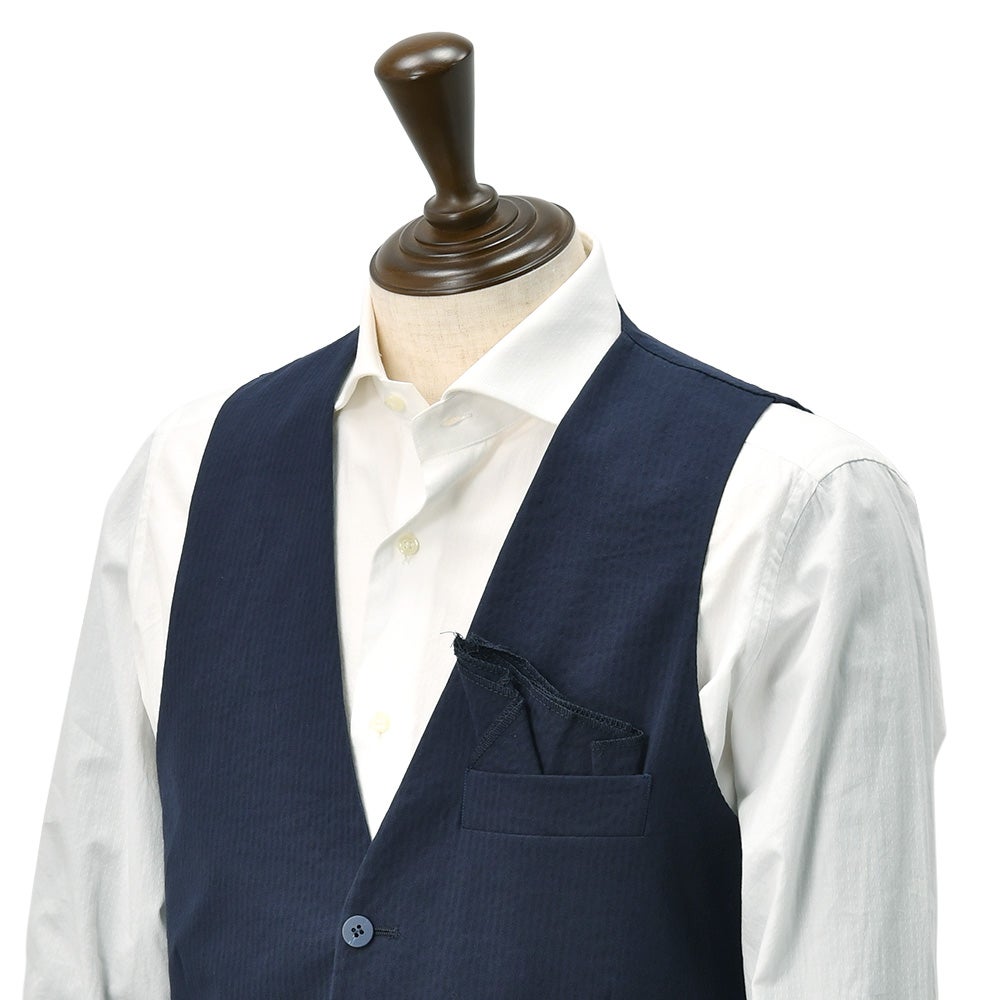 ジャンネット GIANNETTO シングルジレ メンズ ベスト GILET シアサッカー生地 ネイビー 紺 軽量 総裏地 同素材チーフ付属 イタリア製 国内正規品 オクテット名古屋