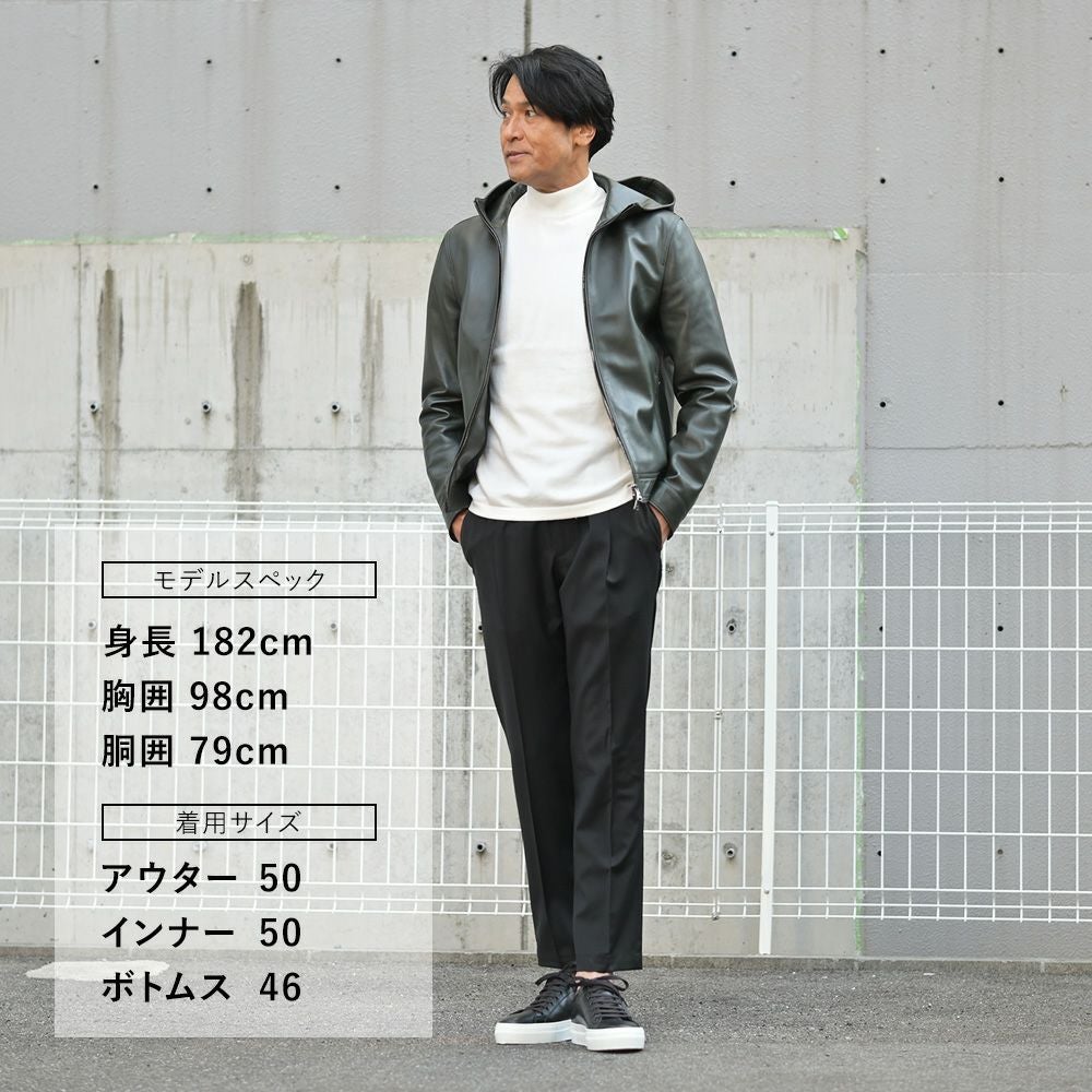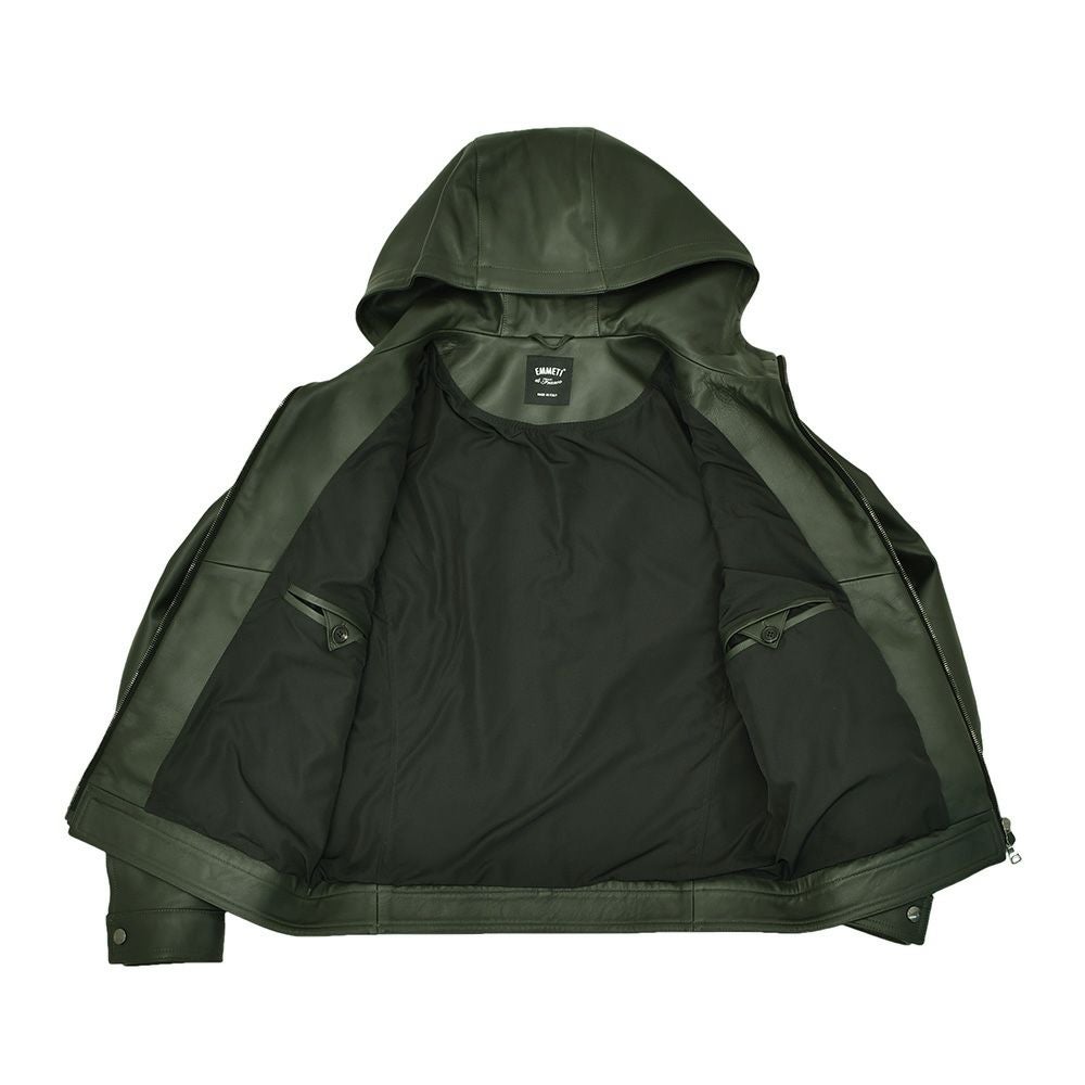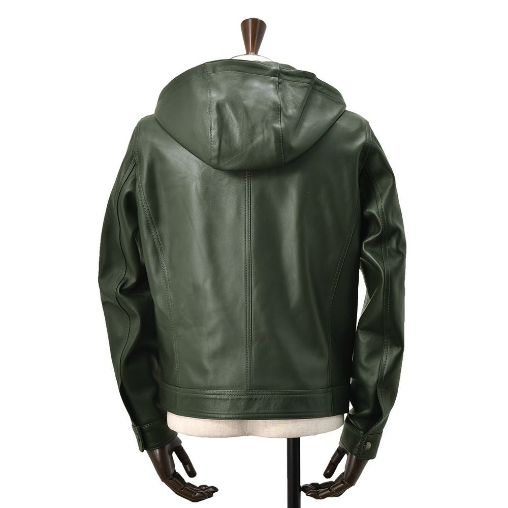 エンメティ EMMETI フーディーレザージャケット メンズ レザーブルゾン JURI HOODIE ユリフーディー ラムスキンレザー ナッパチェラータ ダークグリーン スリムフィット 0.7mm厚 国内正規品 オクテット名古屋