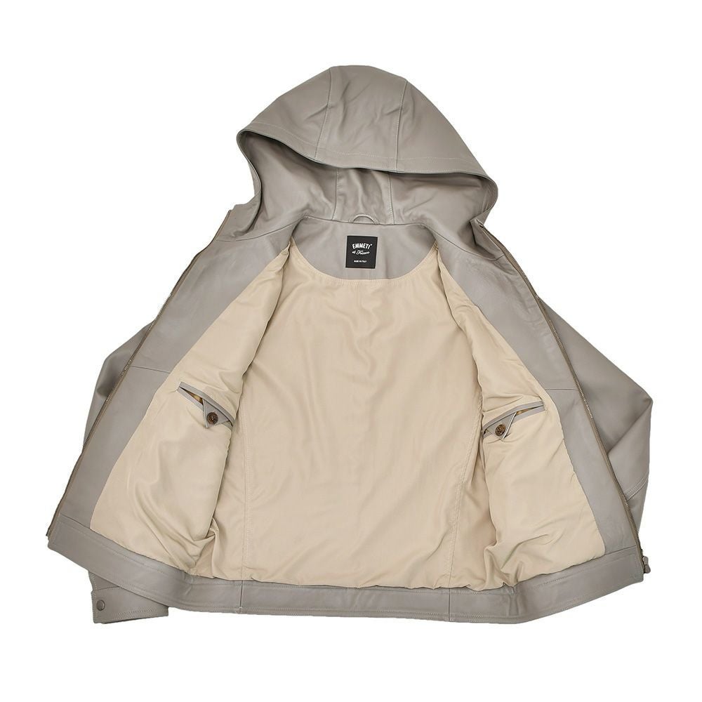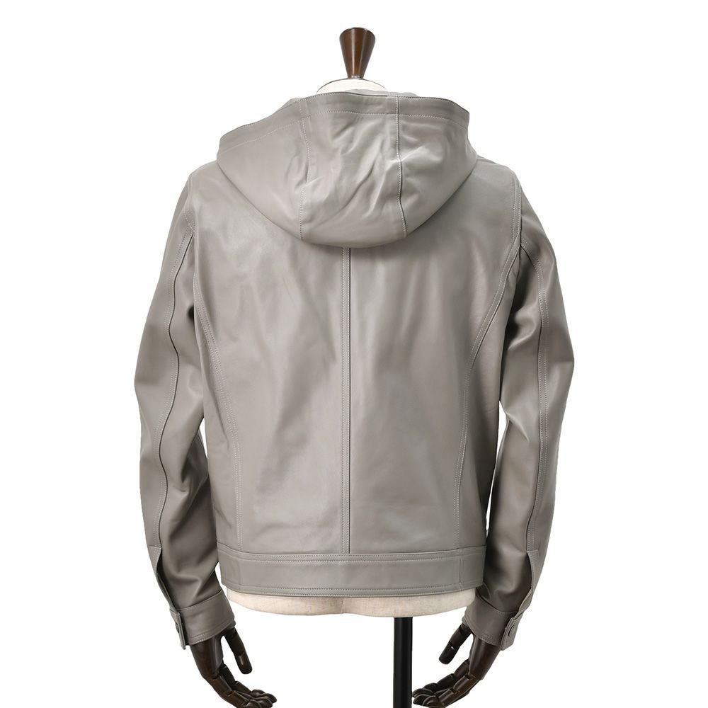 エンメティ EMMETI フーディーレザージャケット メンズ レザーブルゾン JURI HOODIE ユリフーディー ラムスキンレザー ナッパチェラータ グレー スリムフィット 0.7mm厚 国内正規品 オクテット名古屋