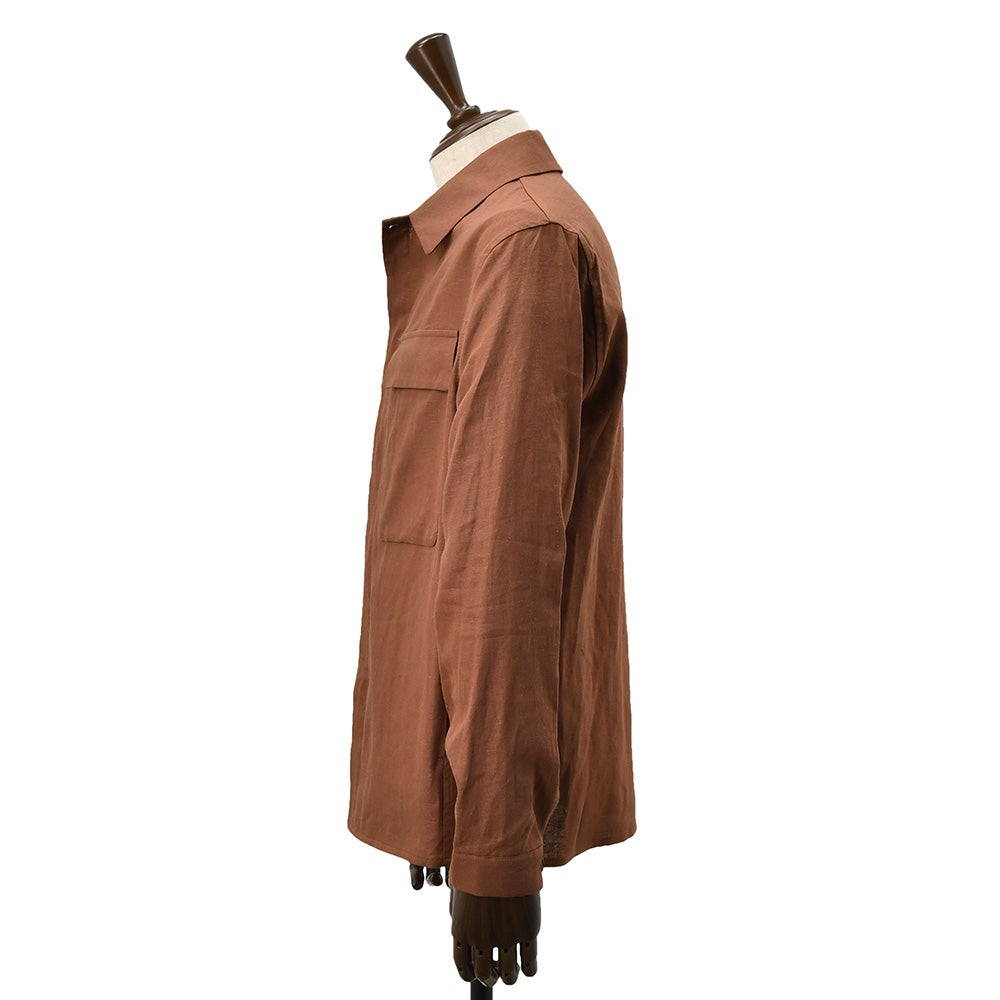 イーヴォ HEVO シャツアウター メンズ ワークブルゾン SPECCHIOLLA スペッキオッラ リネンレーヨン レッドブラウン フラップ付き胸ポケット リラックスフィット 薄手 国内正規品 オクテット名古屋