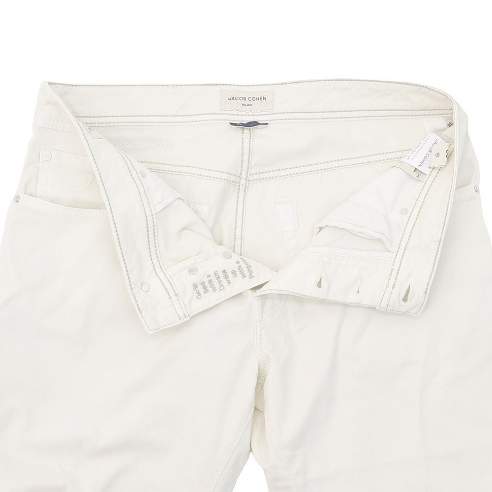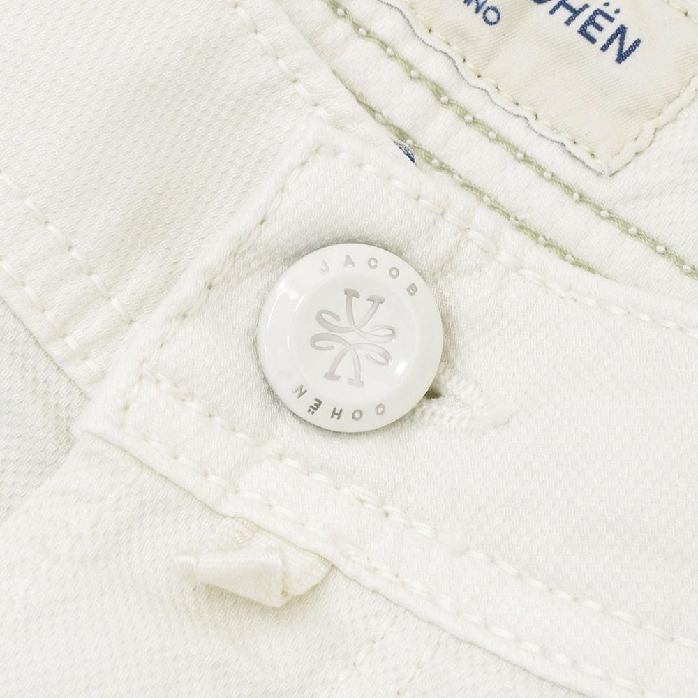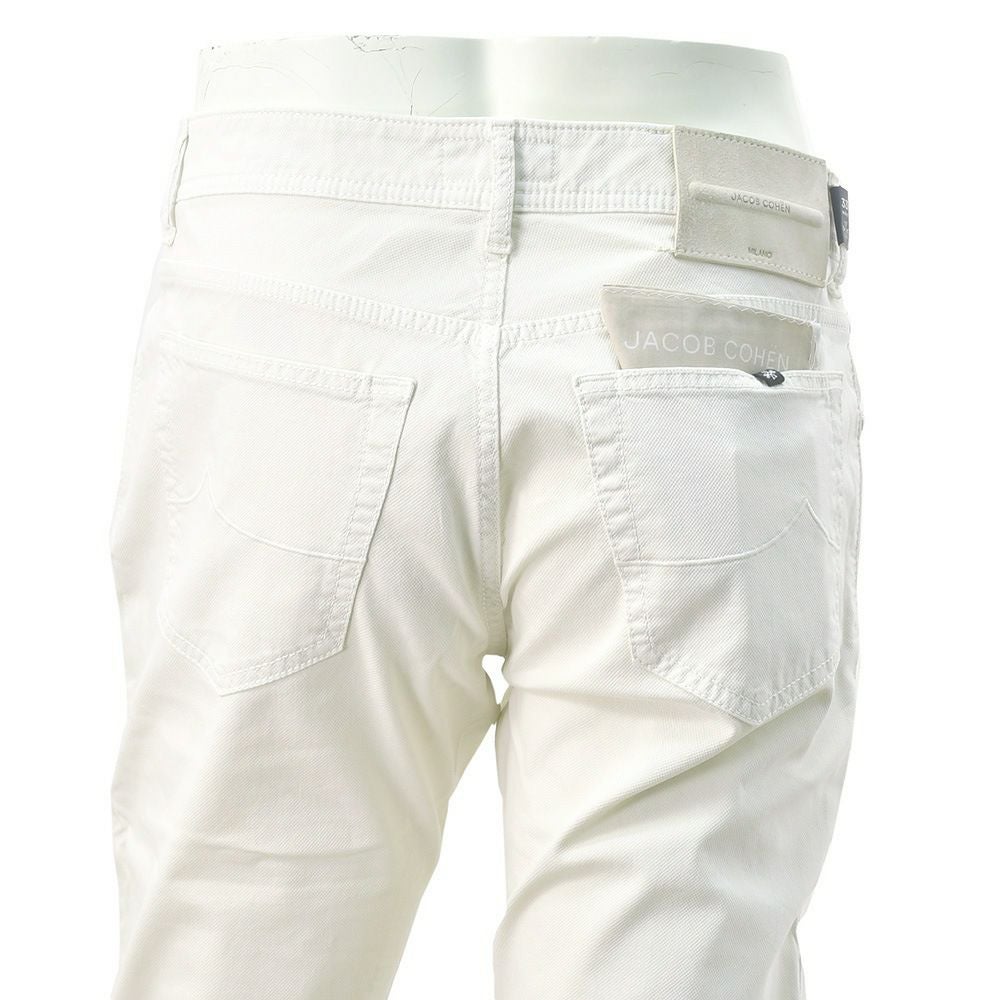 ヤコブコーエン JACOB COHEN コットンパンツ メンズ チノパンツ バーズアイ柄 BARD バードモデル コットンストレッチ オフホワイト 白 スリムストレート ゴートレザーバックパッチ 国内正規品 オクテット名古屋