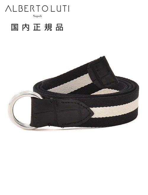 アルベルト ルティ ALBERTO LUTI リングベルト メンズ リボンベルト コットン×型押しレザー ブラック×ホワイト 黒×白 30mm幅 ブランド刻印 シルバー真鍮バックル 国内正規品 でらでら 公式ブランド