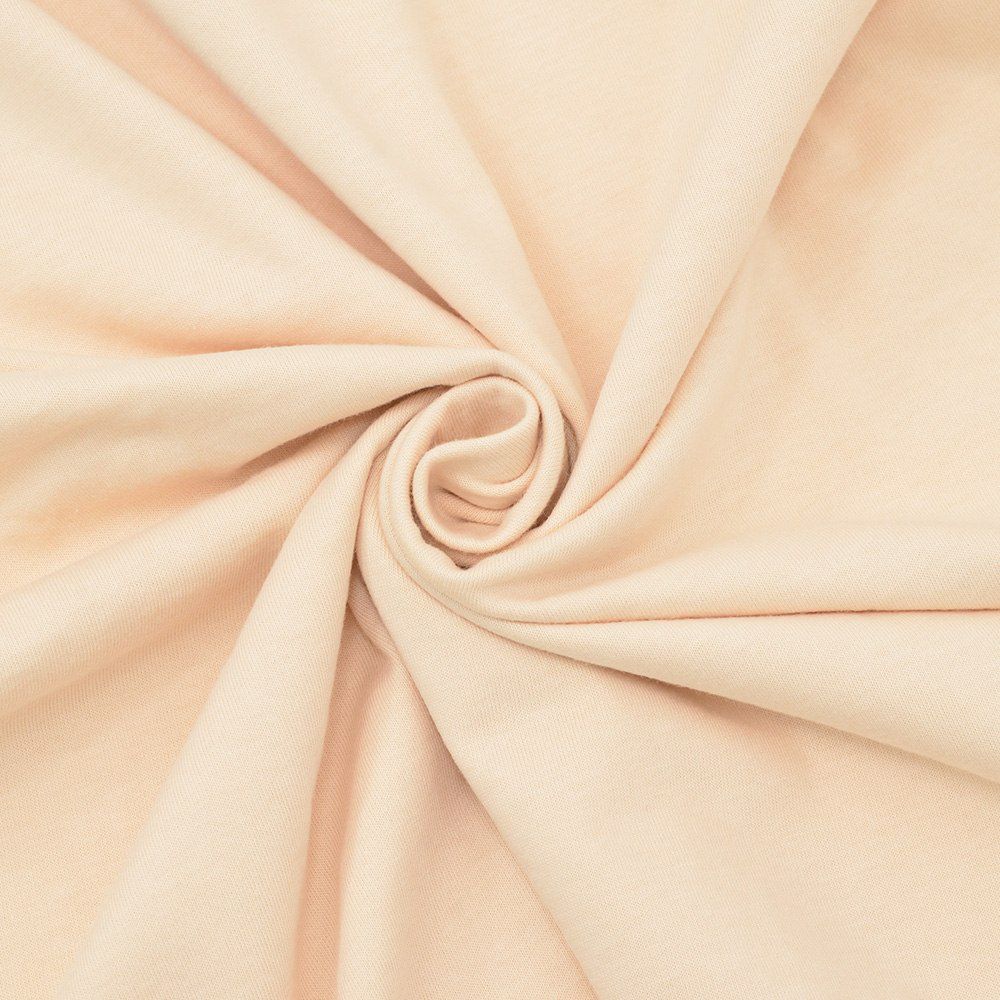 使用されている生地は、柔らかでスムースのような心地よい着用感を堪能して頂けるコットンスムースジャージー。滑らかでふんわりとした生地になりますので、素肌でも着用出来てしまう生地感です。起毛感も程よく取り除き、長いシーズン着用して頂ける点も魅力です。ずっと触れていたくなる生地は、やみつきになります。