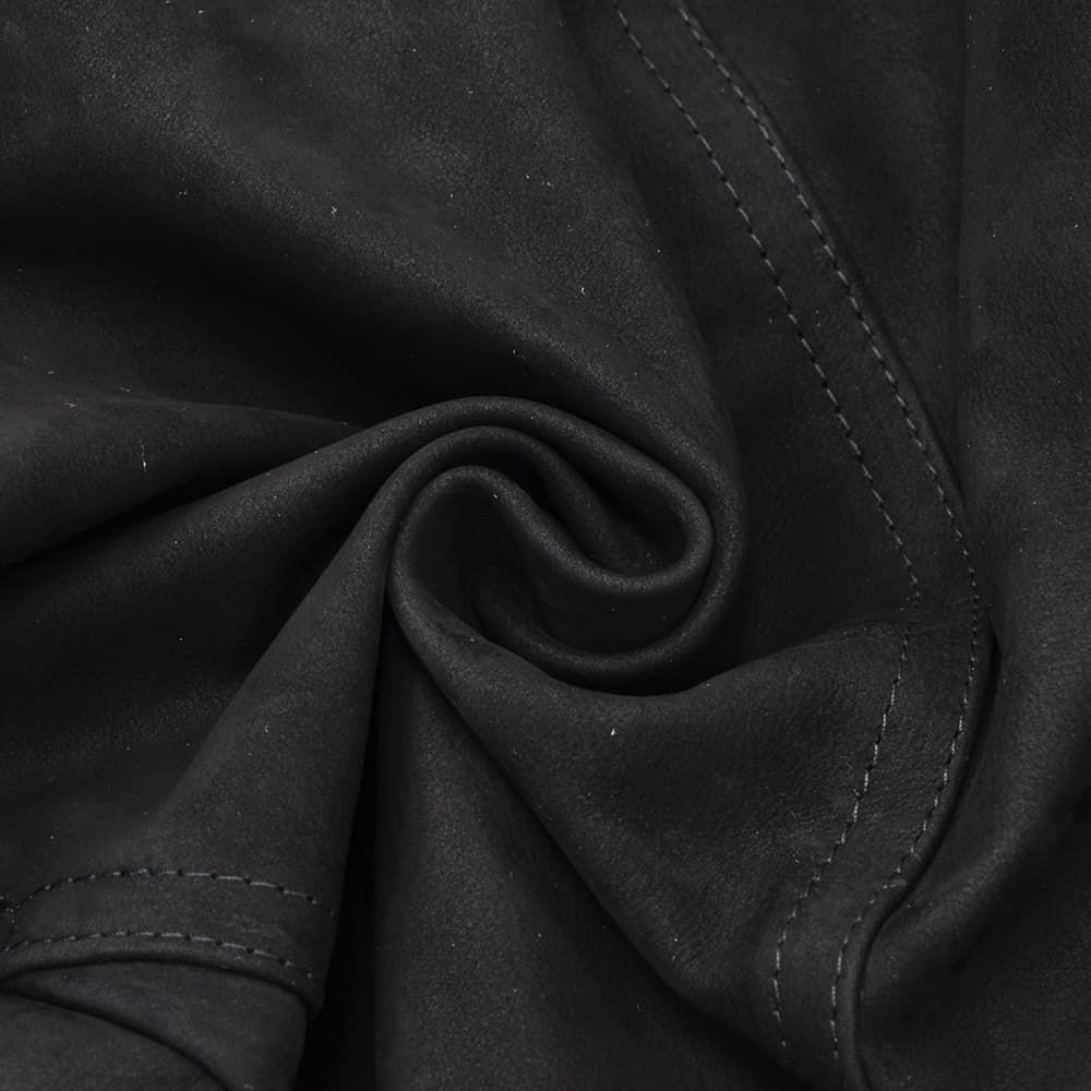 そしてカラーは、重厚感とシャープさを備えたブラック。漆黒の中にほんのりと起毛感を感じるヌバックならではのマットな質感が、大人の色気と存在感を引き立てます。王道でありながら、ひと味違う表情を楽しめるブラックヌバック。スタイルを問わず、ワードローブの主役になってくれる頼れる1着です。
