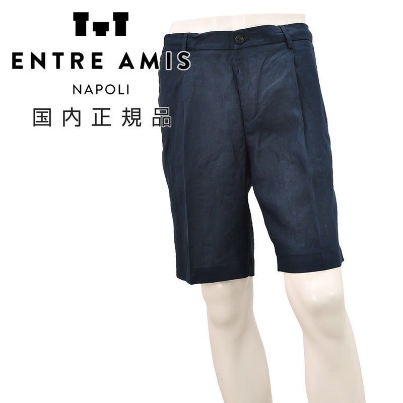 アントレアミ ENTRE AMIS イージーショーツ メンズ ハーフパンツ VOLGA ヴォルガ リネン100% ネイビーブルー 1プリーツ バックシャーリング&ドローコード仕様 テーパードシルエット 国内正規品 オクテット名古屋