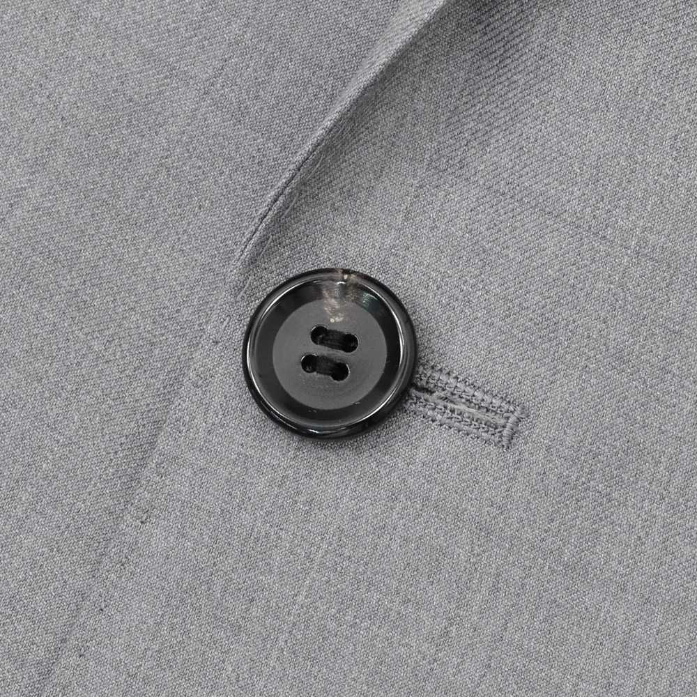 ジャケットには、ビジネススーツで定番のノッチドラペルを採用し、ラペル幅を幅広にとる事で、クラシックな印象もプラス。ボタンには全て本水牛ボタンを用いた本切羽仕様であり、春夏シーズンならではの背抜き仕様。袖通しが良く、風通しの良さを持ち合わせております。着用時だけでなく、脱ぎ着する際のスムーズさも計算された設計が、ご紹介のスーツならではの特徴の1つです。