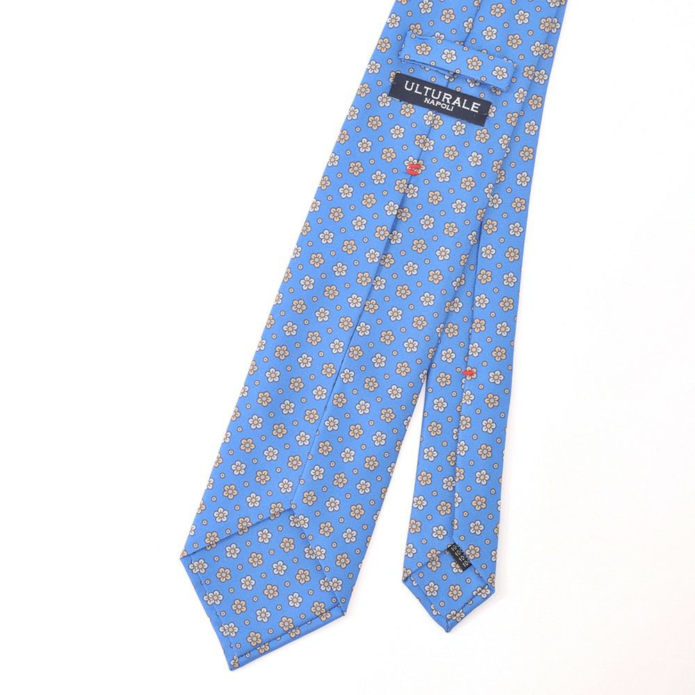 ULTURALE ウルトゥラーレ メンズ シルクネクタイ 7つ折り セッテピエゲ 大剣7cm シルク サックスブルー 2種フラワー 20/21秋冬