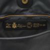 入口を絞る革紐ストラップが、内側サイドに設置されています。仕切り兼用となる調整ストラップを使うと、スクエアから丸い台形のような別の形に変身。 大容量を薄くコンパクトにしたい際に用いて、使わない時は、内側に、留めておけるループ穴がありますので、挿し込んで収納できる仕様に。荷物が多いときはストラップを外して長方形型に、荷物が少ないときは台形型にして使えるという2つの表情をお楽しみ頂ける画期的なデザイン。この利便性がフェリージのバッグの魅力的な部分だと思います。
