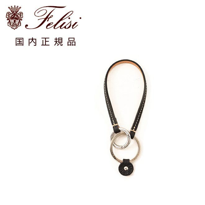 フェリージ Felisi キーリング 男女兼用 9159/LD キーホルダー シュリンクレザー ブラック 黒 真鍮パーツ 丸型カラビナ ハンドル取り付け可能 ブランド刻印 国内正規品 でらでら 公式ブランド