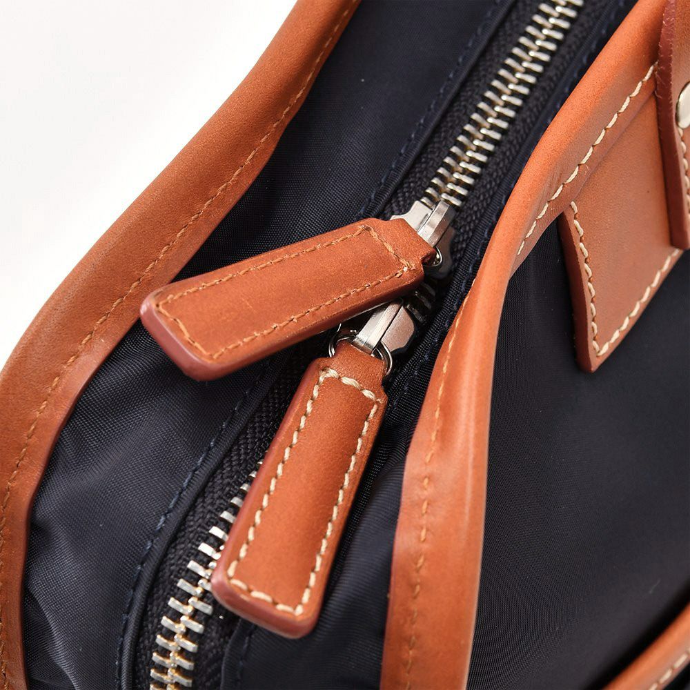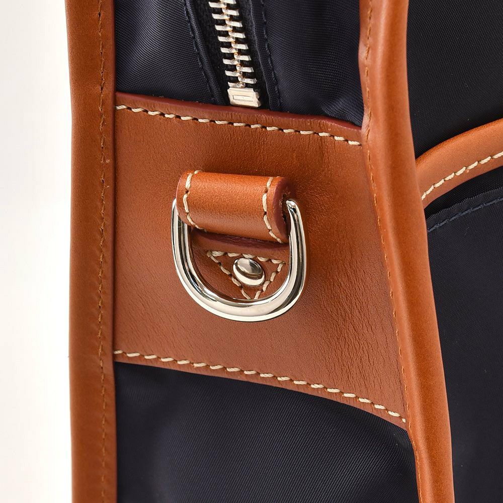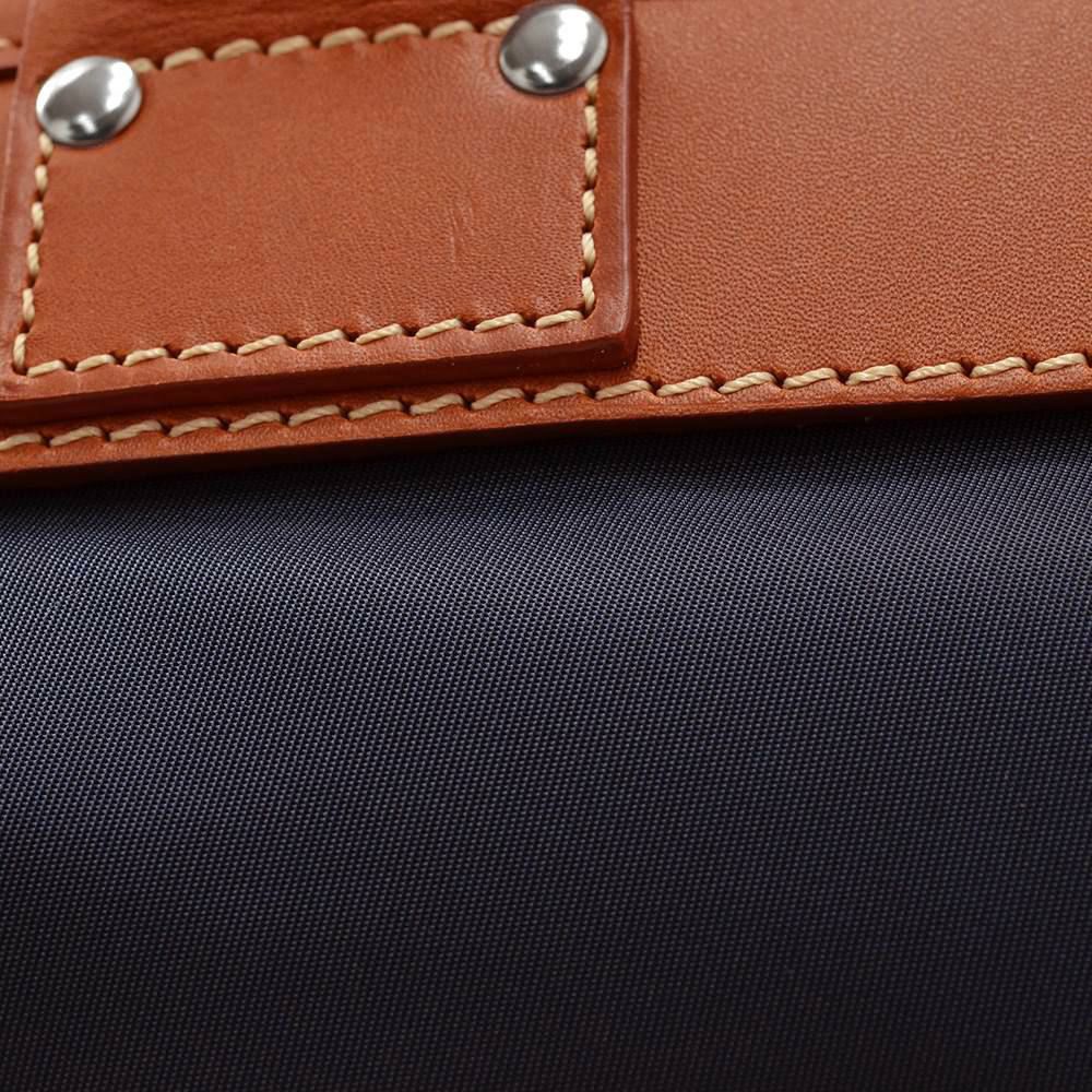 使用されている素材は、シルクのような風合いのあるイタリアナイロンを使用。キメの細かく滑らかで 厚み・弾発があり、上品な光沢を放つ、繊細なファブリック。ナイロンに合わせるバケッタレザーは、イタリアのトスカーナ 地方で古くから伝わる伝統製法により仕上げられた、非常に希少であり厳選されたものを使用しております。内側はコットンキャンバス地張り。使う程に馴染み、味わい深く進化する素材にもご注目くださいませ。