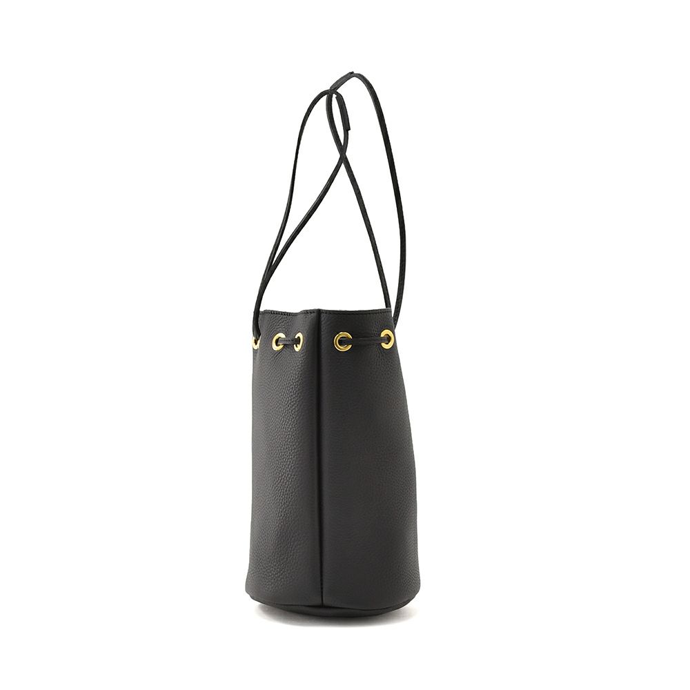 『巾着フォルムがアクセントとなるレザーショルダーバッグ』