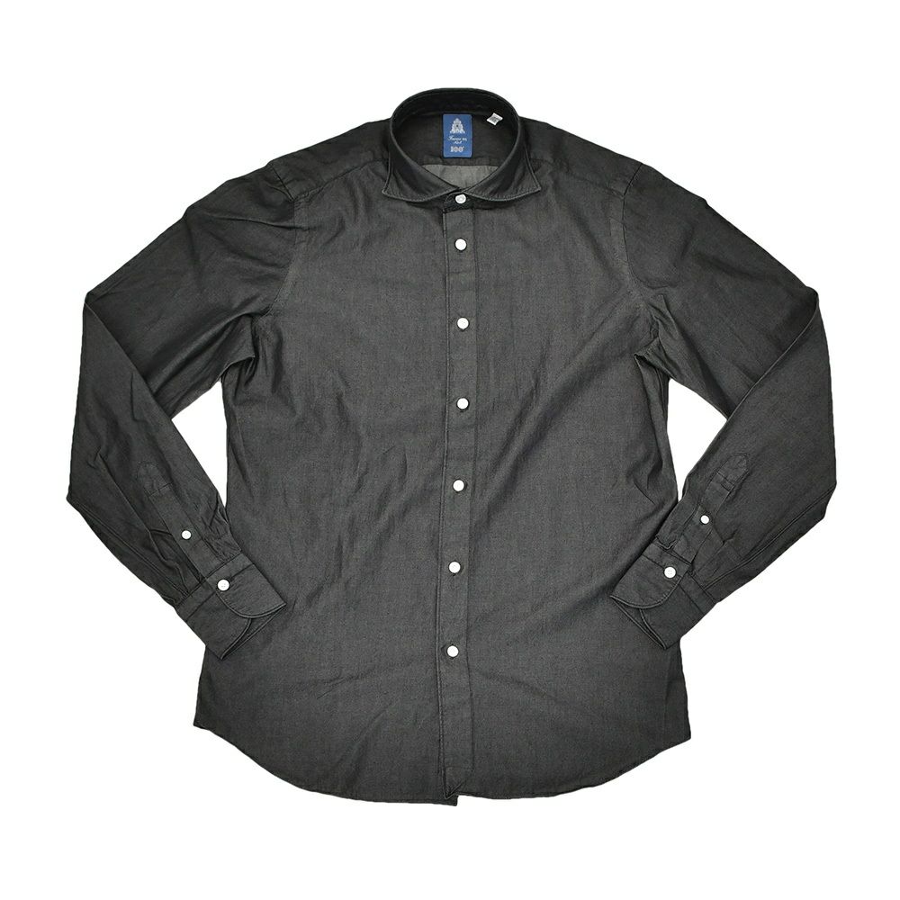 襟型には“SIMONE(シモーネ)”を採用し、芯なしでも自然に立ち上がる構造で、ノータイでもタイドアップでも首元を美しく演出。ナチュラルな美しいドレープと、素朴ながらも美しい素材感、職人技の細やかさが光る格別なブラックシャンブレーシャツは、大人の男性のスマートな装いに欠かせない逸品です。