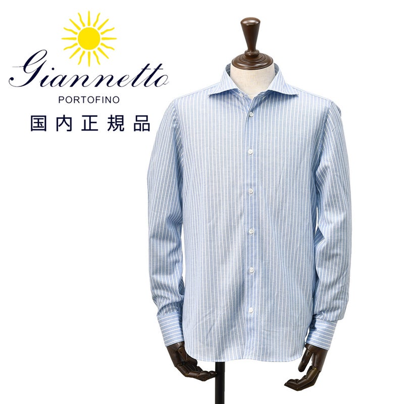 カラーは、サックスブルーにホワイトのストライプが走るカラーリング。爽やかさと清潔感を併せ持ち、装いにハンサムな印象を添える配色です。