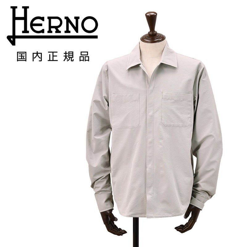 ヘルノ HERNO シャツブルゾン メンズ 長袖シャツ ポリエステルシアサッカー生地 ライトグレー 胸ポケットデザイン レギュラーフィット CM000020U 軽量 セットアップ可 国内正規品 オクテット名古屋