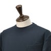 リブクルーネック仕立てのシャープなフェイスの上で光る、変形デザインポケットがアクセントとして際立っていて、他のスウェットシャツとはひと味違った、少しモードで都会的な雰囲気わ漂わせました。