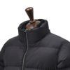 フロントには、使い勝手の良いダブルジップ開閉を採用しており、そのジップはリブニットをあしらったスタンドネックへと続き、じんわりとした温もりで首元を優しく包み込みます。