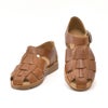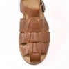 前のめにしにくいストラップ&5穴バックル留め。指先が前に飛び出し過ぎない、サイドからぐるりと、甲を包み込むような編み込みのデザイン。