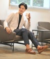 アッパーには、GR グレインレザーというシボ革を使用しています。LIS オイルドレザー同様にオイルが浸透されており、自然な撥水性があります。少量の雨ならへちゃらであります、が、その後のお手入れは念入りにしてくださいませ。エイジングへの効果も抜群で、ツヤが乗っかり、深く濃く、色が変化してゆきます。