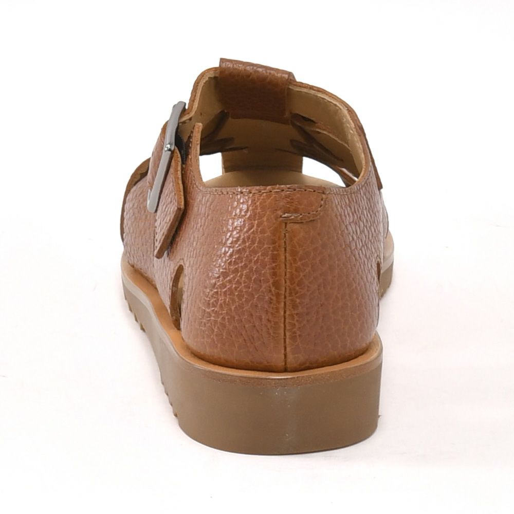 サンダルというよりも靴のような見え感が特徴であり、フィット感を高めてくれる5穴バックル留めのストラップ調節が可能なサマーシューズ。ざっくりと編み込んでおりますので、素足がちらりと見える爽やかさはありますが、指先が飛び出しすぎないよう考えられたデザインが魅力です。