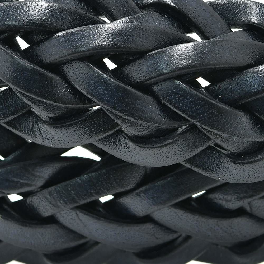 素材は、初めてお召し頂く時から柔らかくウエストへ馴染む、艶やかな表情に仕上がったカーフレザーを、高度な技術の備わった職人達が、ひとつずつ丁寧に編み込みました。その美しい編み柄が、革の風合いを最大限に惹きたてており、繊細で高級感漂うテイストを、気軽に装いへ取り込む事ができます。