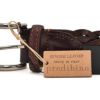 『軽やかでありながらも立体感を帯びた編み柄が風格を放つ編み込みレザーベルト』