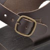 また、足首のホールド感は窮屈すぎず、しなやかに足の甲へと馴染むフィット感で、スムーズな脱ぎ履きができる履き口も、嬉しいポイントのひとつです。それでいて、安定感のあるベルト留めがしっかりと足首を囲い、バックルでご自身のサイズ感に合う様、更に快適な履き心地へと調整が可能です。ソックスの有無で少しづつ変化するサイズ感にも柔軟に対応でき、スタイリングの幅を広げています。