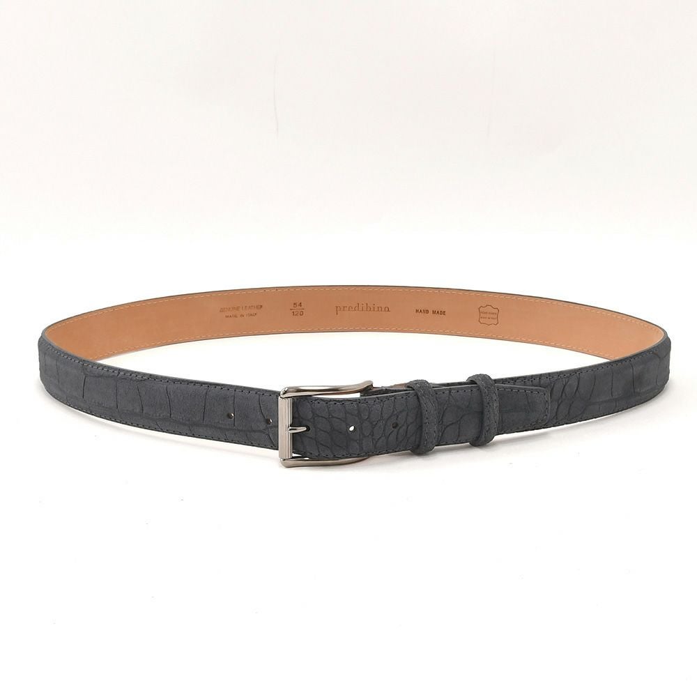 プレディビーノ  Predibino レザーベルト メンズ クロコダイル型押し スエードレザー ダークグレー 3.5cm幅 本革 真鍮バックル 長さカット可能 ギフト 贈り物 イタリア製 でらでら 公式ブランド