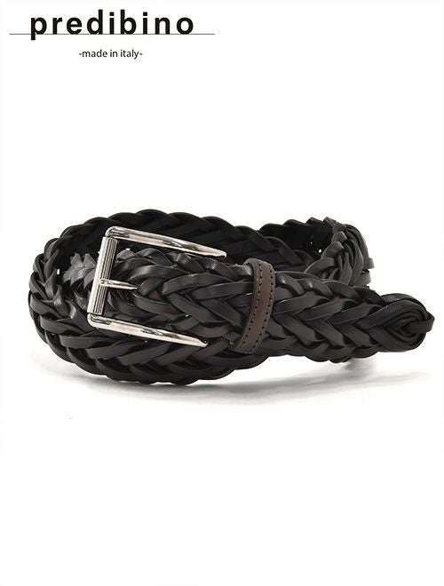 プレディビーノ Predibino レザーメッシュベルト メンズ 編み込み イタリアンレザー ダークブラウン 3.5cm幅 本革 真鍮バックル ギフト 贈り物 イタリア製 でらでら 公式ブランド