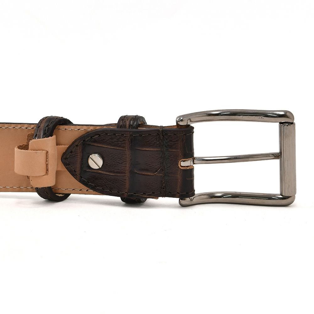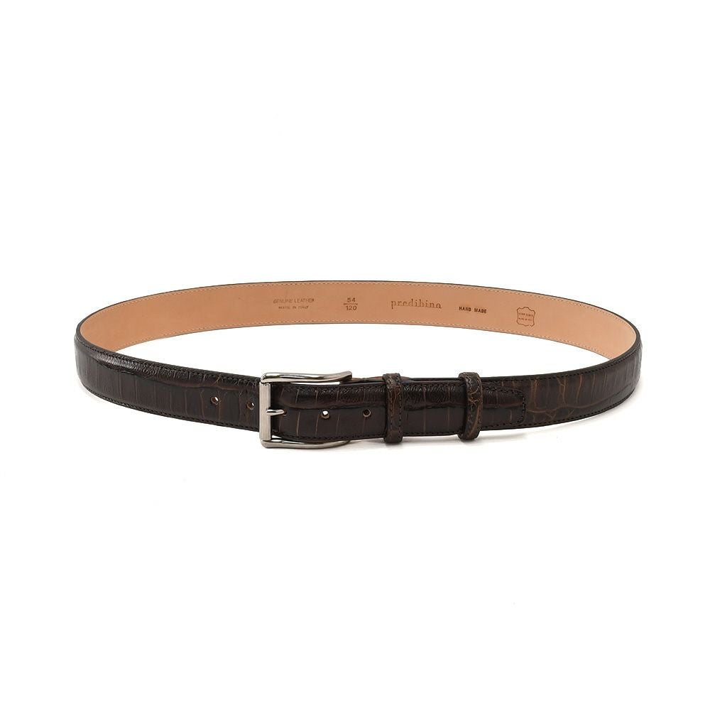プレディビーノ Predibino レザーベルト メンズ クロコ型押し風 イタリアンレザー ダークブラウン 3.5cm幅 本革 プリントデザイン 真鍮バックル ギフト 贈り物 イタリア製 でらでら 公式ブランド