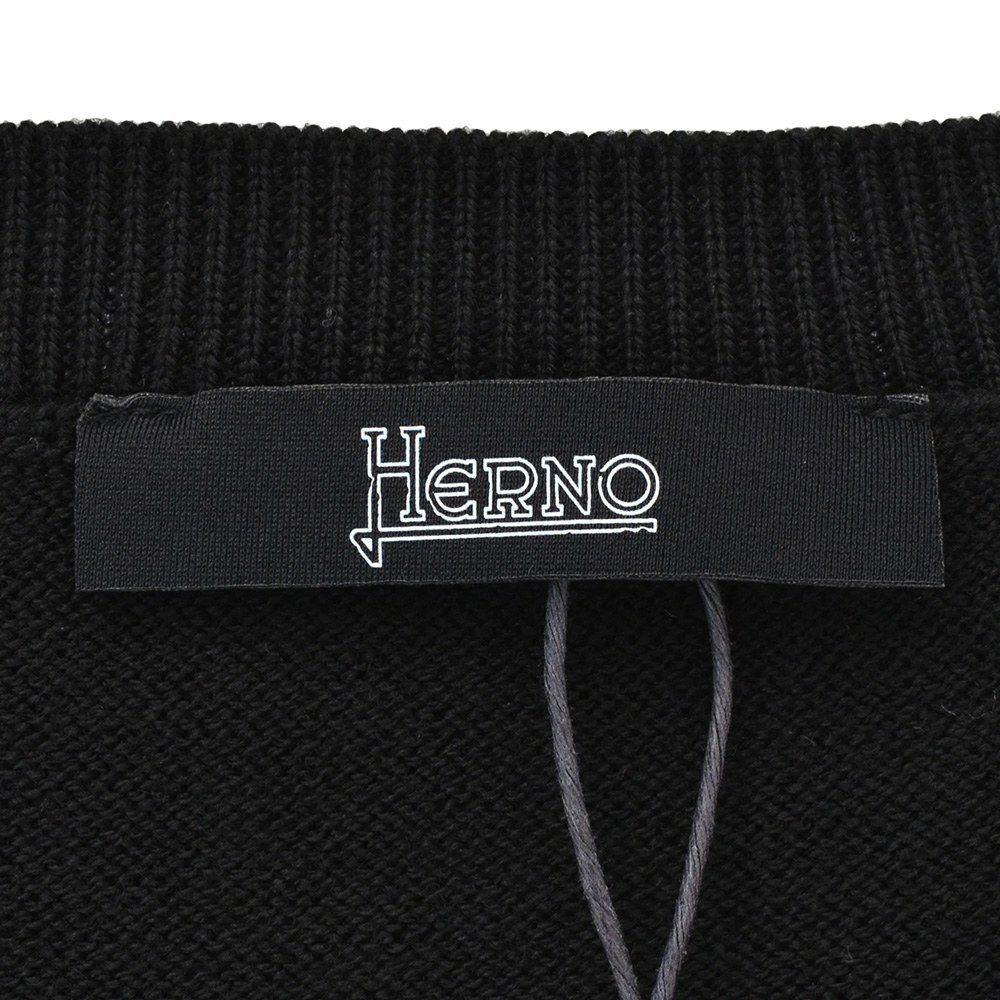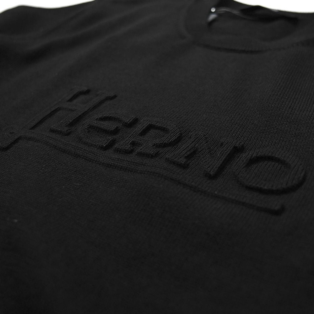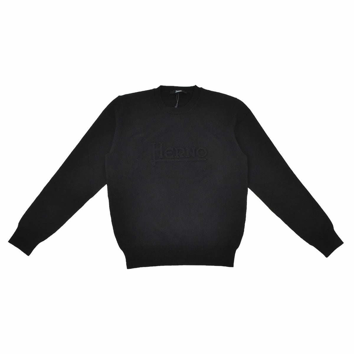 ヘルノ HERNO クルーネックニット メンズ ミドルゲージセーター MG000129U ウールコットン ブラック 黒 同色エンボスロゴ レギュラーフィット シルバープレート 国内正規品 でらでら 公式ブランド