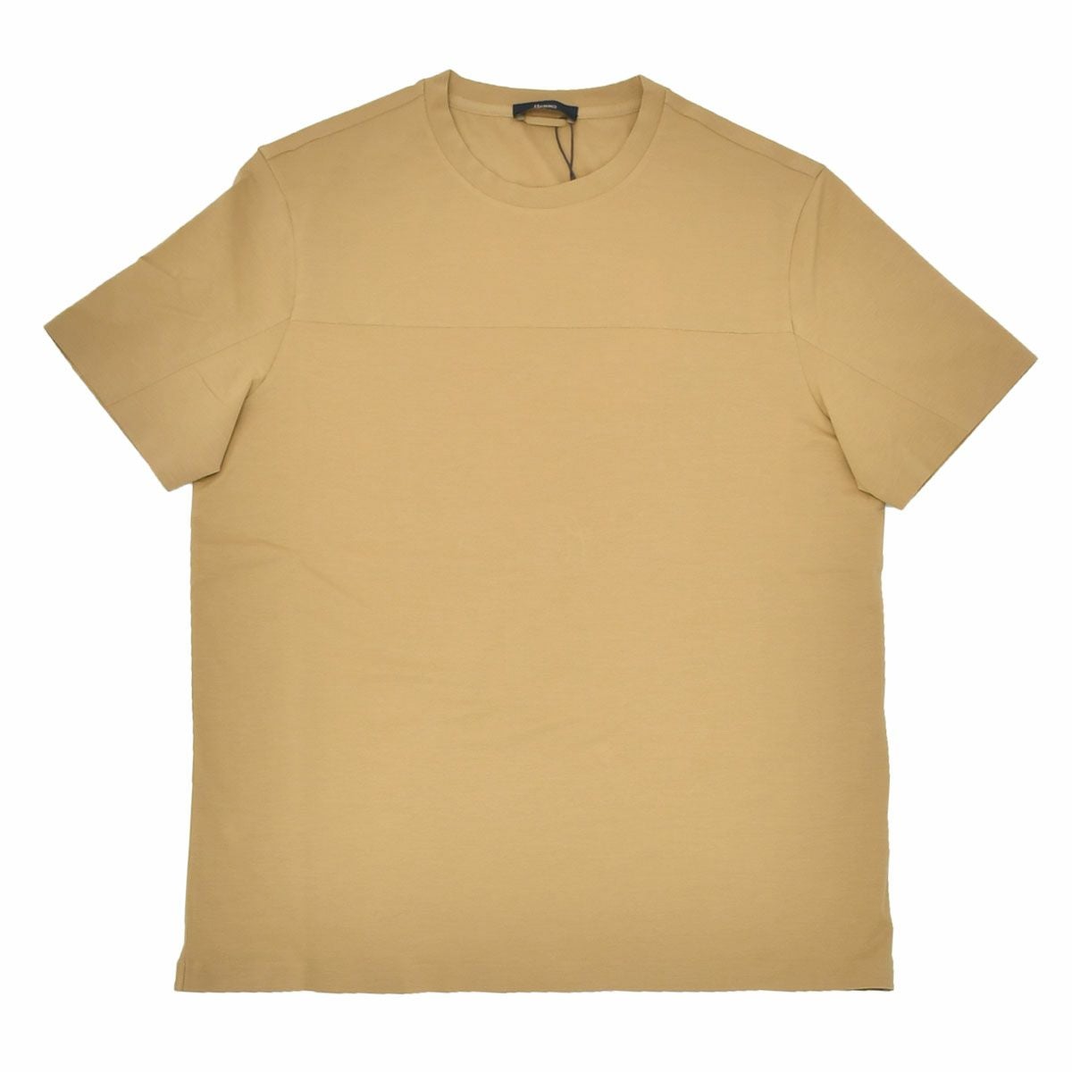 ヘルノ HERNO 半袖Tシャツ メンズ クルーネックカットソー JG000200U SUPERFINE COTTON STRETCH キャメル 変形切り替えデザイン コットンジャージー レギュラーフィット 国内正規品 でらでら 公式ブランド