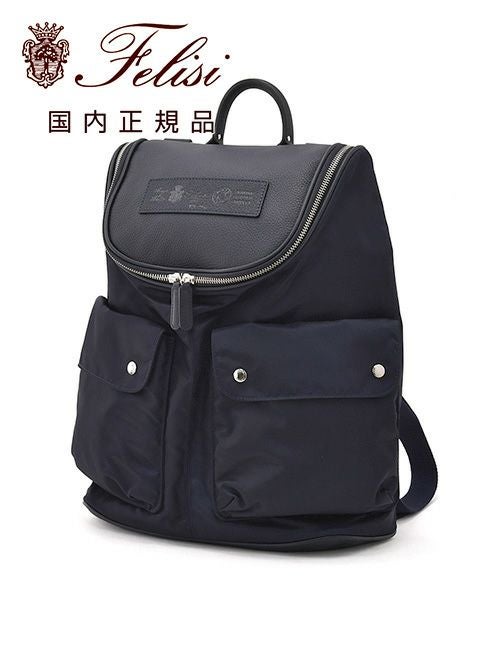 フェリージ felisii バッグパック メンズ リュック 15/54 DS+LD ナイロン×ソフトキップレザー ネイビー 紺 大容量 SORRISOシリーズ エレガント 国内正規品 でらでら 公式ブランド