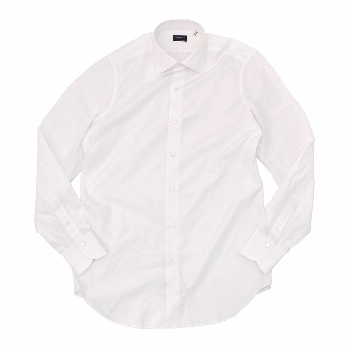 フィナモレ Finamore ドレスシャツ メンズ LUIGI ルイジ ブロード生地 ホワイト 白 ギザコットン セミワイドカラー ブランドロゴ入り貝釦 ハンドステッチ 手縫い MILANO 国内正規品 でらでら 公式ブランド