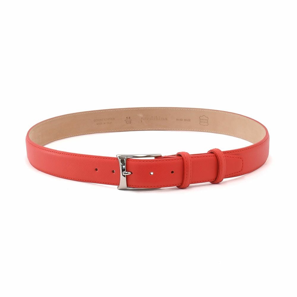 メンズ イタリア製 レザーベルト プレディビーノ プレディビーノ Predibino メンズ イタリア製レザーベルト 3.5cm幅 SAFFIANO サフィアーノ シュリンク型押し レッド イタリア革 ギフト フリーサイズ