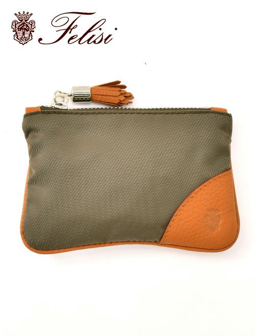 フェリージ felisi キーケース メンズ コンパクトポーチ 813/3/DS+LD ナイロン×ソフトキップレザー トルトラ カーキブラウン チェーンフック式 ユニセックス フリンジ装飾 贈り物 国内正規品 でらでら 公式ブランド