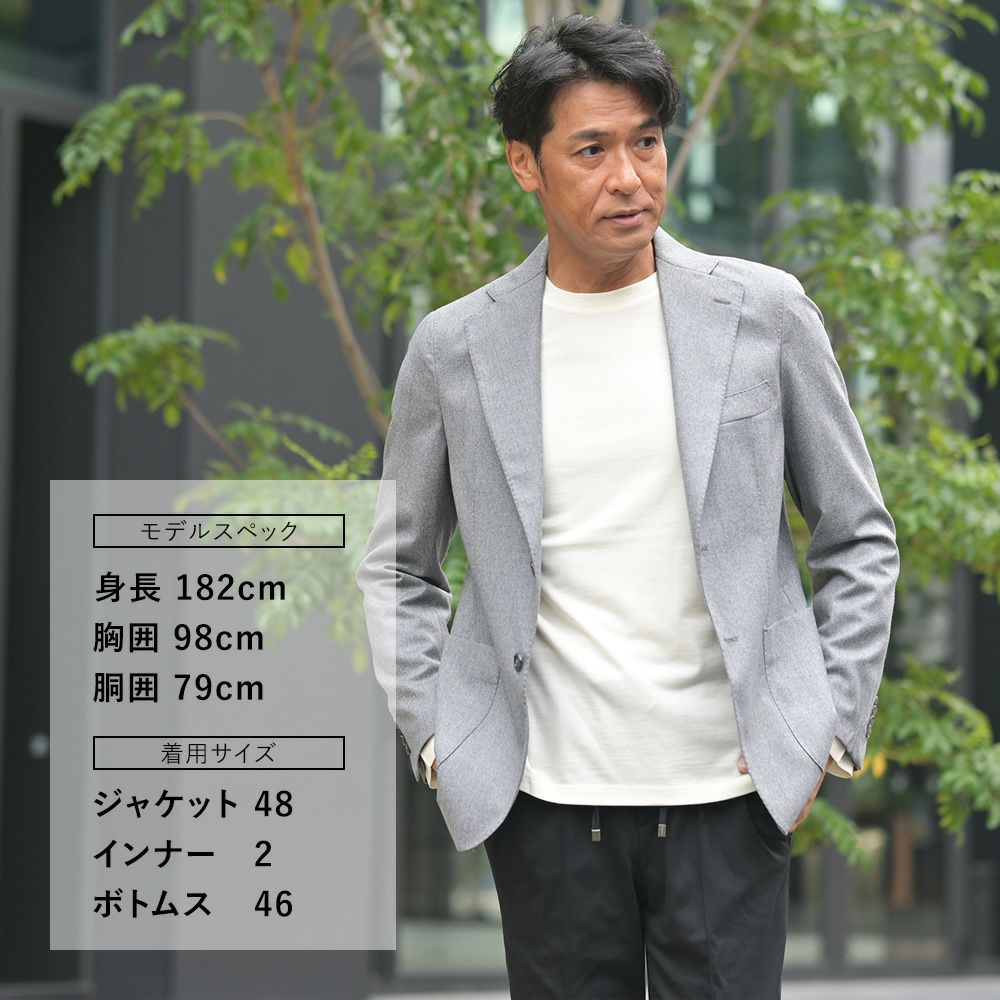 伝統的なバルカポケットをはじめとする、ナポリ仕立てのディティールは、粋で上品な表情を生み出し、全体の印象に深みと落ち着きをもたらします。奥行きのある色合いや素材の質感が、季節感のある温もりや味わい深さを自然に引き立て、普遍的に愛されるウールジャケットとして長く着用できます。
