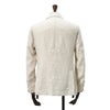 通気性に優れた3者混生地は、リネンならではのドライな肌触りと清涼感を引き立てます。視覚的にも涼しげな風合いが春夏の装いに軽快なニュアンスを与え、ジャケットスタイルをより快適に楽しめる仕上がりです。